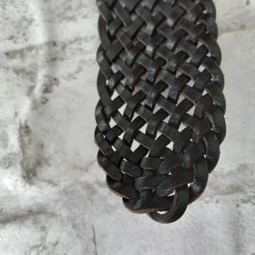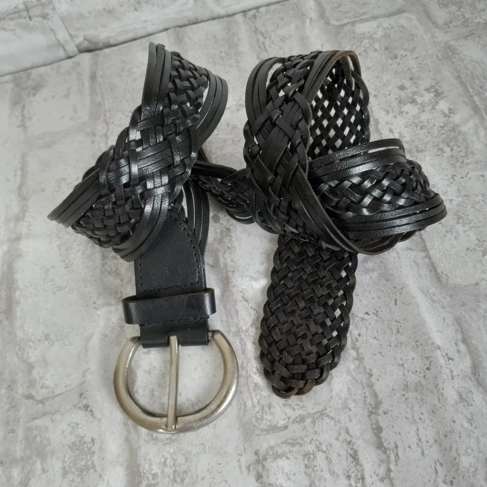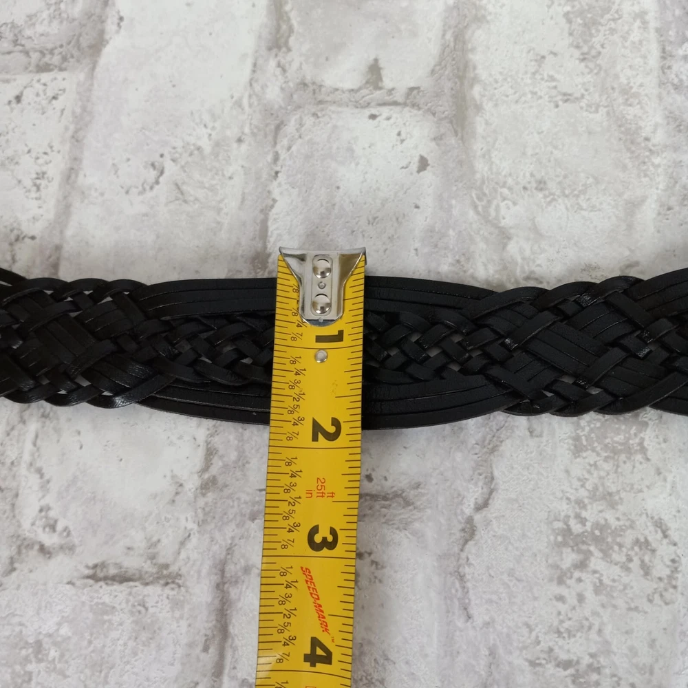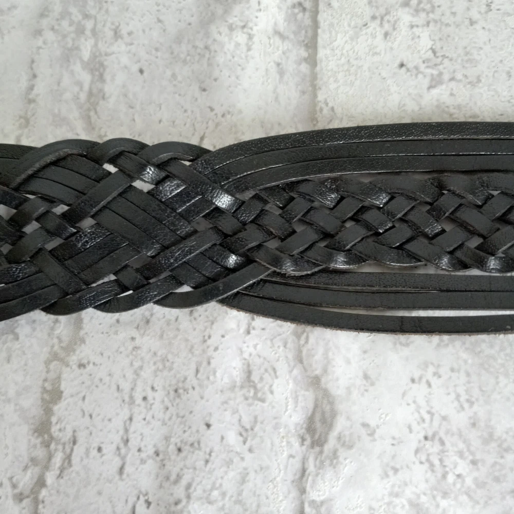 Crafted for those who appreciate a blend of classic style with a touch of bohemian flair, this large-sized black braided belt is a versatile accessory suitable for a variety of looks, from western to biker, and everything in between. Made with high-quality leather, it features a medium-width strap that provides a comfortable fit for waist sizes 38-39 inches, with the convenience of adjustable sizing to ensure a perfect fit. The belt is adorned with a striking silver buckle that adds a hint of sophistication to the overall design. Its durable construction and timeless style make it an ideal choice for any wardrobe, capturing the essence of festival, cowgirl, and classic themes. Whether paired with casual denim or a tailored dress, this belt from Boho is a statement piece that effortlessly complements your unique style.