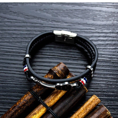 Material:Leathergtin13:Does not applyBrand:UnbrandedStyle:Cuff, BangleMPN:Does not applyColor:BlackMetal:Stainless SteelClasp Type:Box/SnapUPC:Does not applyType:BraceletTheme:MusicMain Stone:Not Applicable