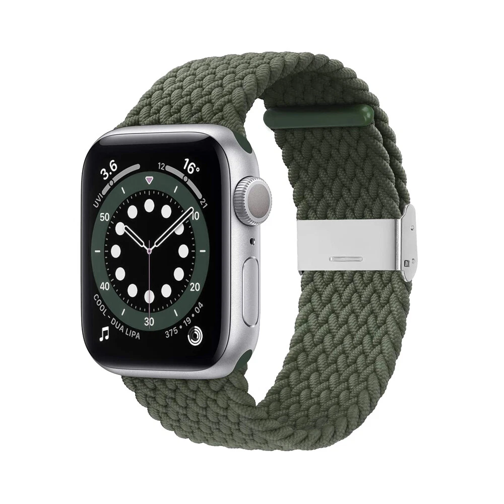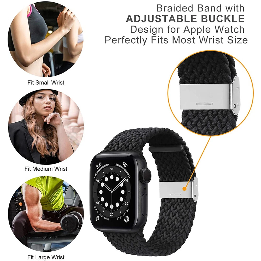 Braided Nylon Sport Loop Band for Apple Watch Series 9 8 7 6 5 SE 40/44/41/45mm Features: ● 100% Brand new and high quality. 【Adjustable Braided Solo Loop】 Stretchy braided sport bands for iwatch bands with BUCKLE, you can adjust the length of iwatch bands to fit your wrist perfectly. Adjustable BUCKLE design for apple watch bands ensures you get the ultracomfortable wearing experience, solve the size trouble perfectly. 【Personalized Design】 The stretchable and adjustable apple watch band is upgraded. This band uses a custom-designed ultra-thin stainless steel slider, which can be adjusted in length and can be easily slipped on the wrist. The stretchable and adjustable elastic woven replacement band 38mm/40mm size fits 4.5"-7.9" (114-200mm) wrist, 42mm/44mm size fits 5.5"-8.5"(140-216mm) wrist. 【Skin-Friendly Materal】 This apple watch band is made of polyester yarn braided around silicone thread from 100 percent recycled materials. The 300D construction offers a soft, textured feel and is both sweat-resistant and water-resistant. 【Easy to Install and Remove】 The braided solo loop comes with iwatch lugs on both ends, which locks onto your iwatch precisely and securely. Easy for installing directly and removing with one button. Compatible With: > For Apple Watch Ultra / Ultra 2 > For Apple Watch Series 9 / Series 8 / Series 7 / Series 6 / Series 5 / Series 4 / Series 3 / Series 2 / Series 1 / > For Apple Watch Nike > For Apple Watch Hermes > For Apple Watch SE Package Contents: 1x Adjustable Nylon Sport Loop Band ONLY !!! ( PS: The Apple Watch in picutures is Not Included )