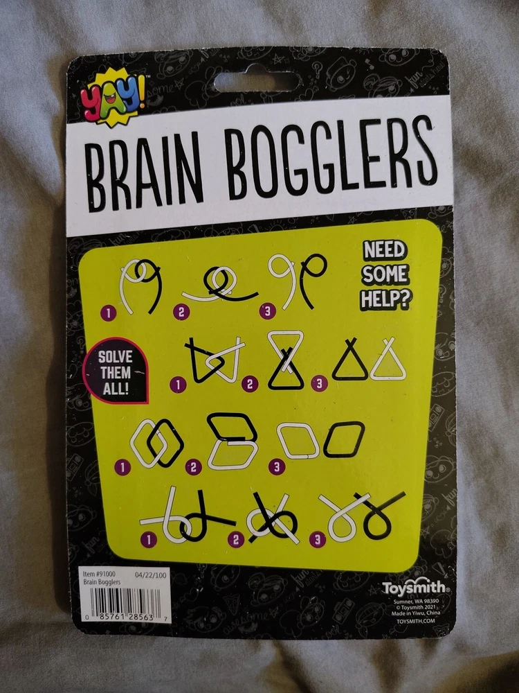 Challenge your mind with the Toysmith Brain Bogglers 6pc Metal Brain Puzzles. This set includes six unique puzzles in various shapes and sizes, including a pyramid, cube, irregular, and spheric design. Each puzzle is made of durable metal and features a silver color, making it a great addition to any collection. These brain teasers are perfect for anyone aged 3 and up, and are sure to provide hours of entertainment. Whether you're a puzzle enthusiast or just looking for a fun way to pass the time, the Toysmith Brain Bogglers are a must-have. Made in China, these puzzles are a great way to challenge your mind and sharpen your strategy skills.