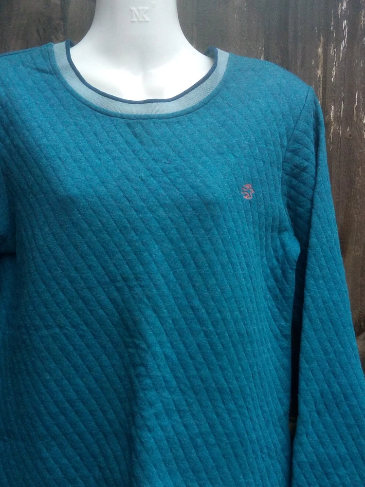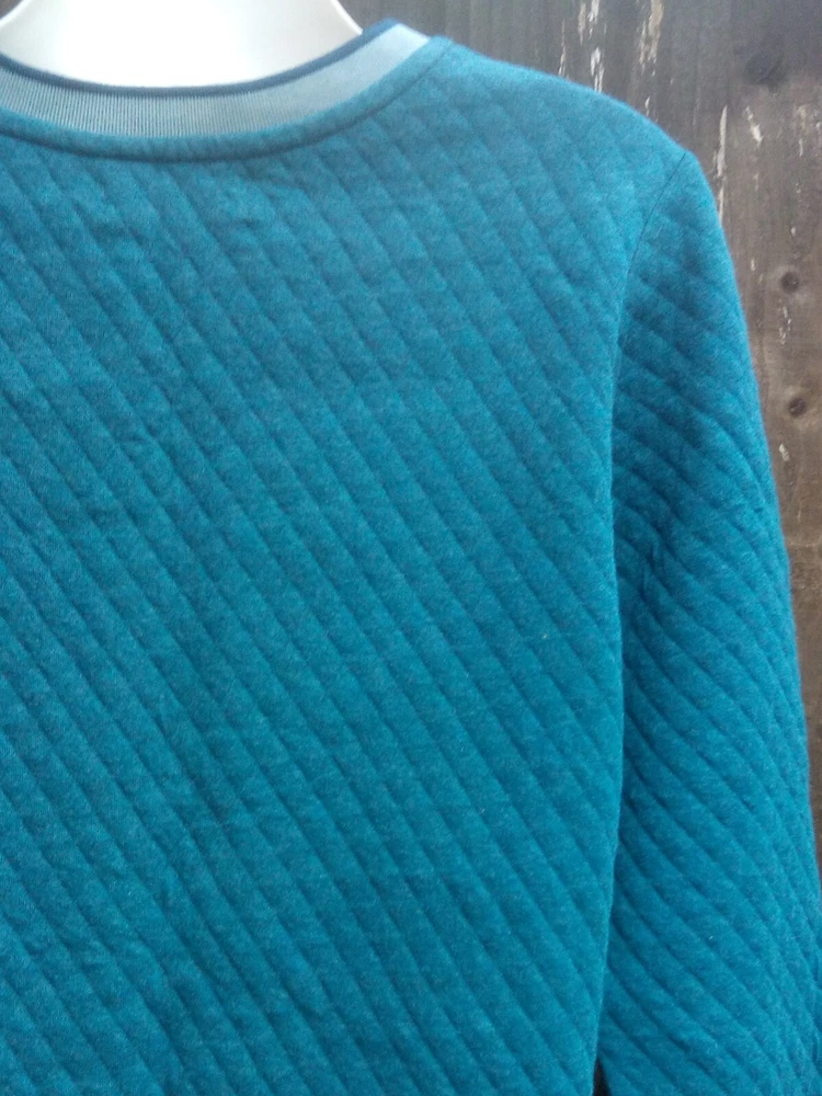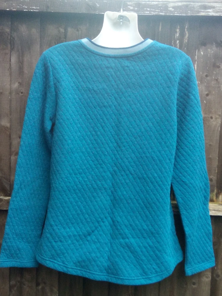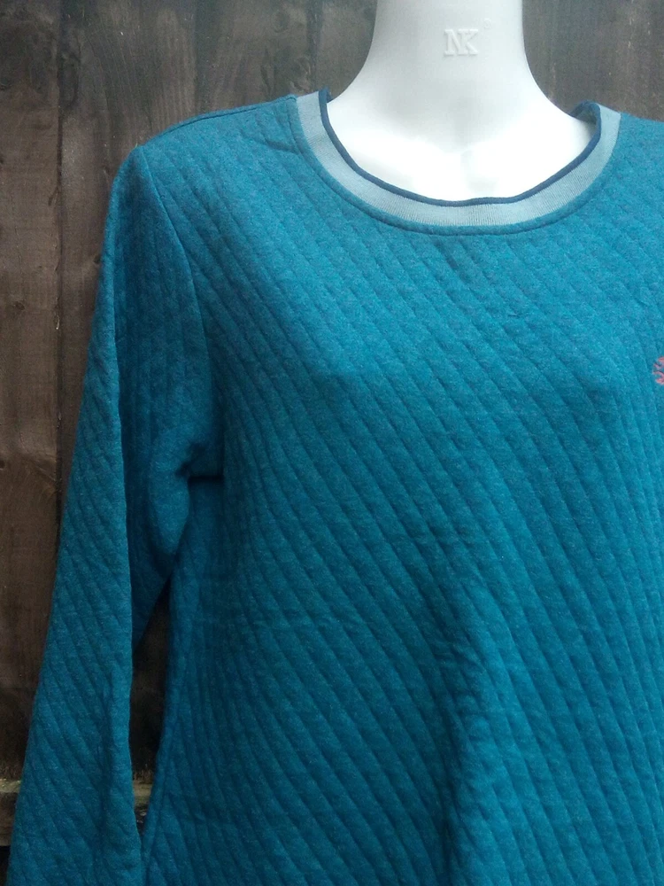Brakeburn women's long sleeve quilted pullover sweater UK 8 Moroccan blue marl 80% cotton, 20% polyester 19'' pit to pit 25.5'' from shoulder to bottom hem Curved hem Brand new with tags