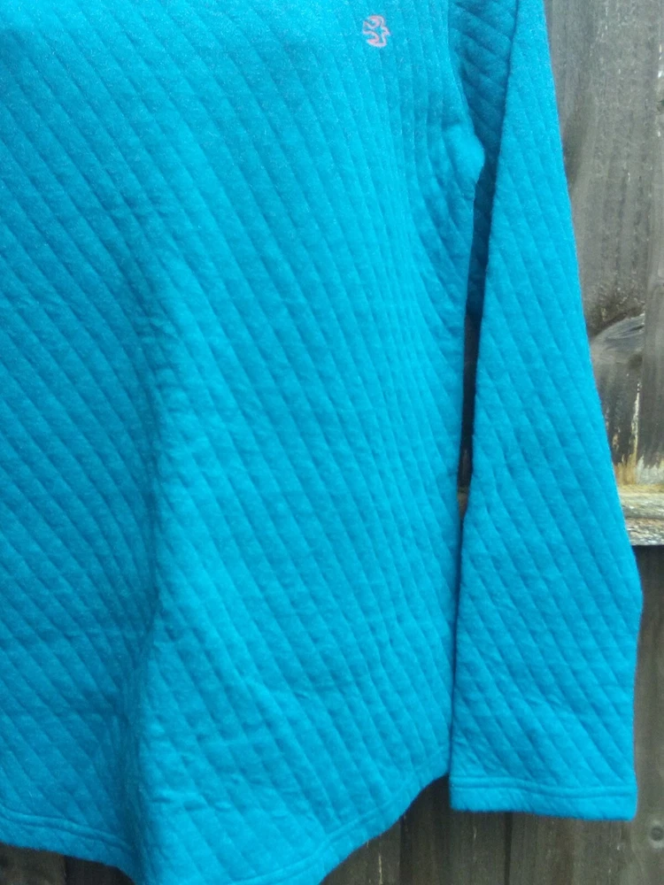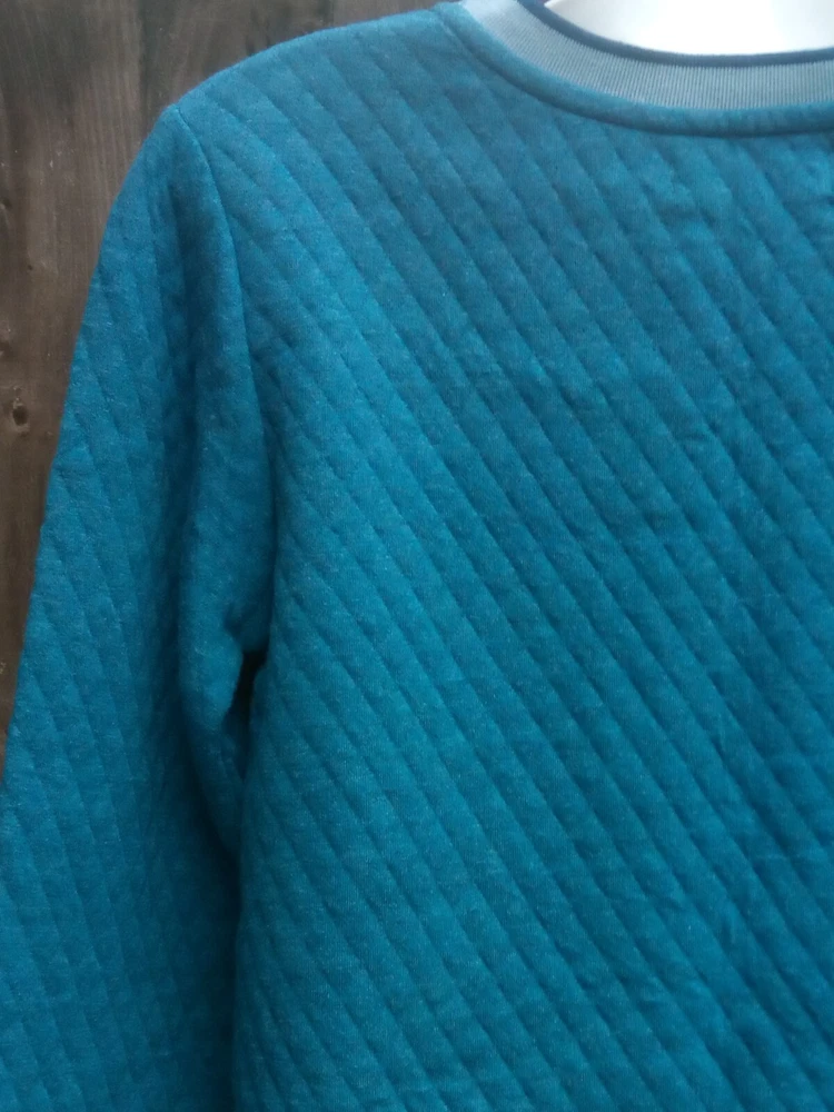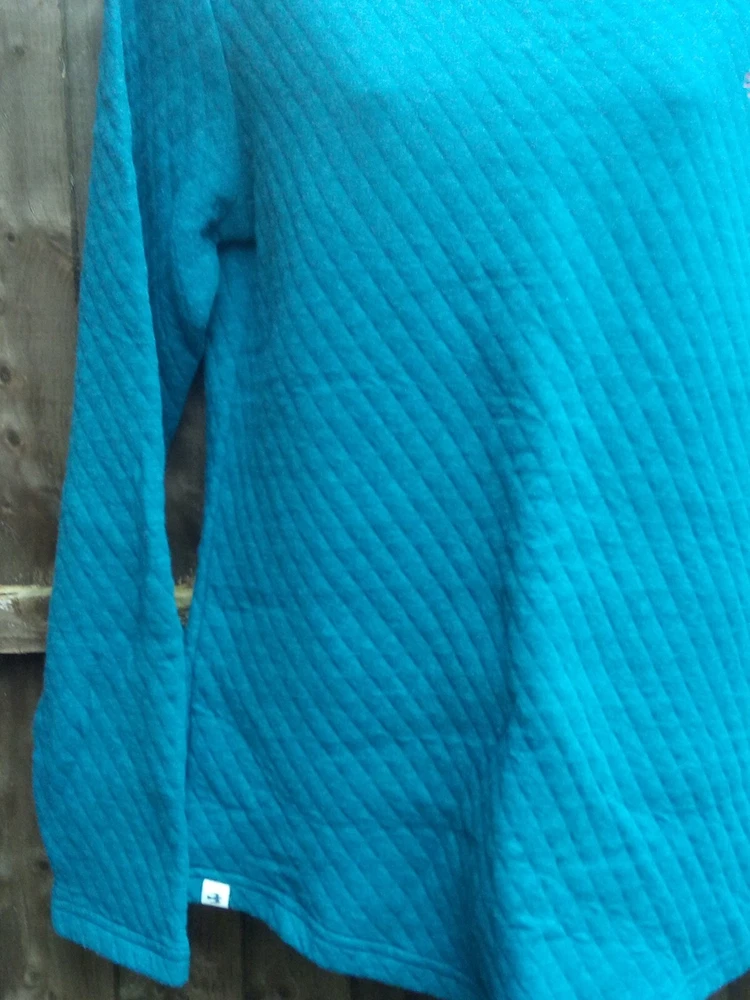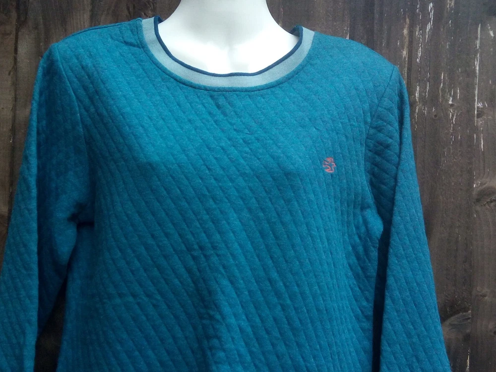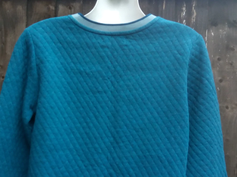 Brakeburn women's long sleeve quilted pullover sweater UK 8 Moroccan blue marl 80% cotton, 20% polyester 19'' pit to pit 25.5'' from shoulder to bottom hem Curved hem Brand new with tags