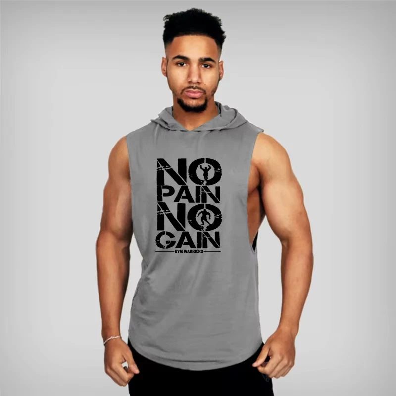 HomeBrand Gyms Clothing Mens Bodybuilding Hooded Tank Top Cotton Sleeveless Vest Swe