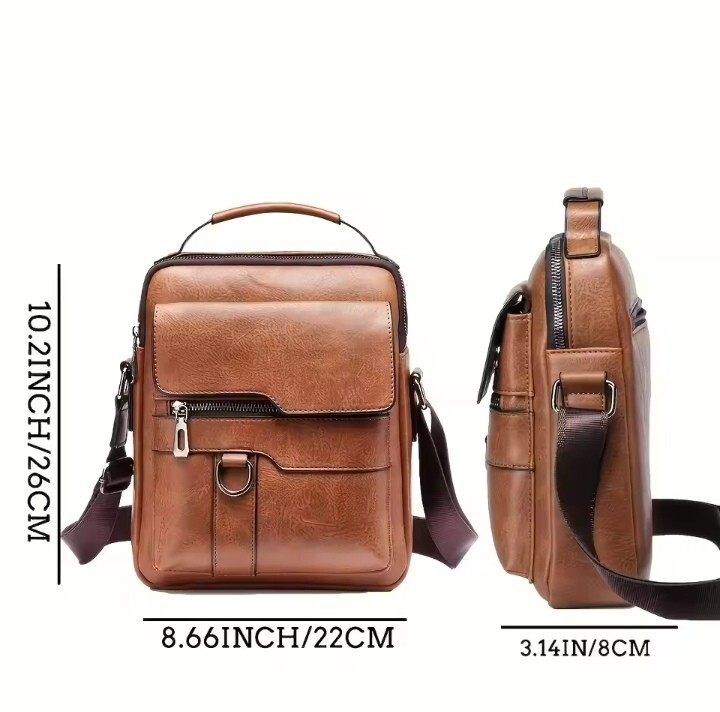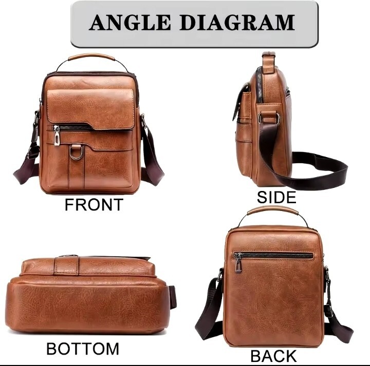 Brand: Unbranded Material: Leather Color: Brown Handle/Strap Material: Leather Theme: Art, Retro, School Department: Men Features: Adjustable Strap, Anti-Theft, Cross-Body Strap, Detachable Strap, Eco Friendly, Mobile Phone Pocket, Outer Pockets, Packable Style: Shoulder Bag Lining Material: Canvas, Leather