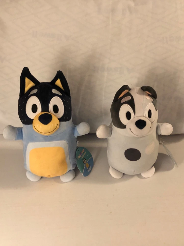 Brand New Bluey Squishmallows Hugmees bandit 10" and muffin 8” Plush set 2024 Relieve some of your favorite moments from the Bluey cartoon with bandit and muffin They come from a pet free smoke free bluey fan home