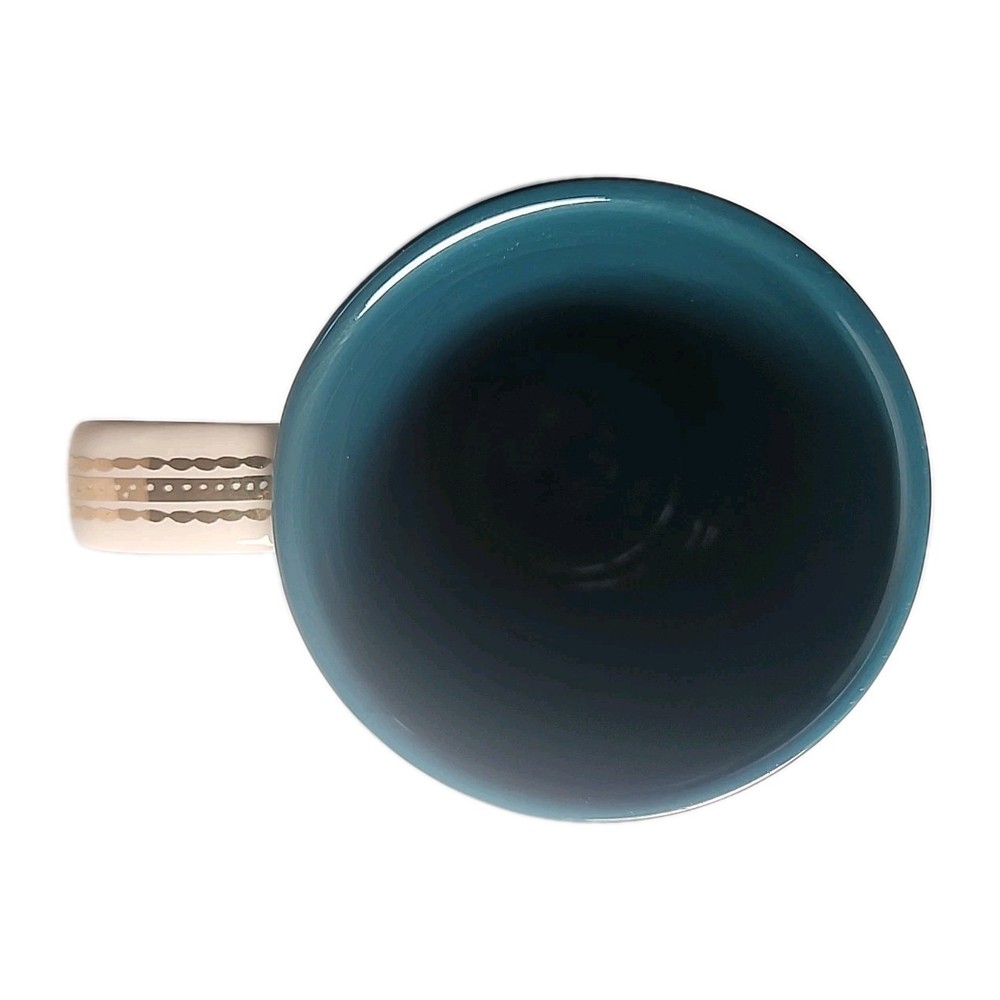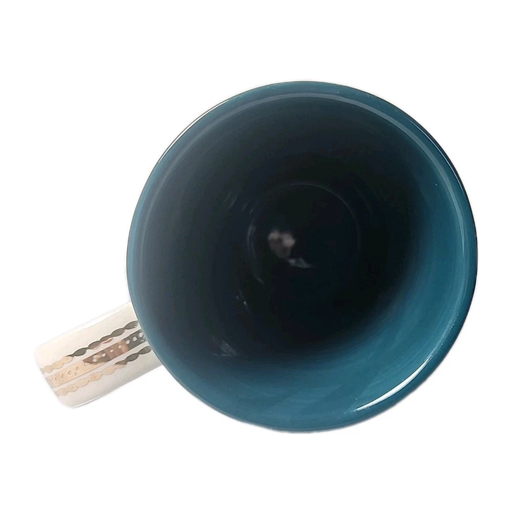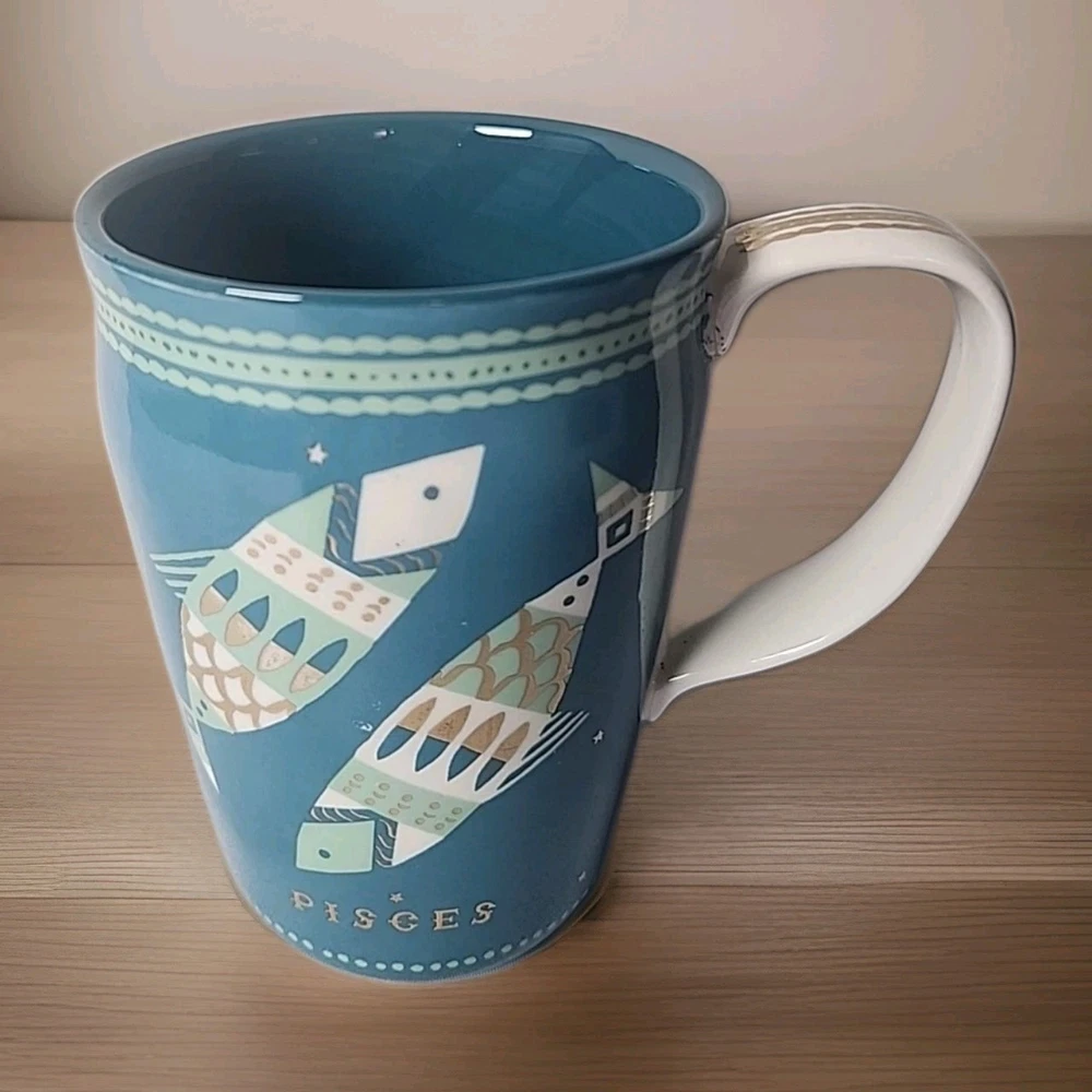 The Danielle Kroll Anthropologie Pisces coffee mug is a stylish and contemporary piece that features a zodiac pattern with a fish theme. Made of ceramic, this 16oz mug in teal blue color is decorated with celestial and horoscope designs, making it perfect for all occasions. The rounded shape and decorated features add a touch of elegance to your kitchen or dining area while being suitable for hot beverages. This unique mug is sure to be a standout piece in your collection, representing the Pisces zodiac sign with its fish motif.