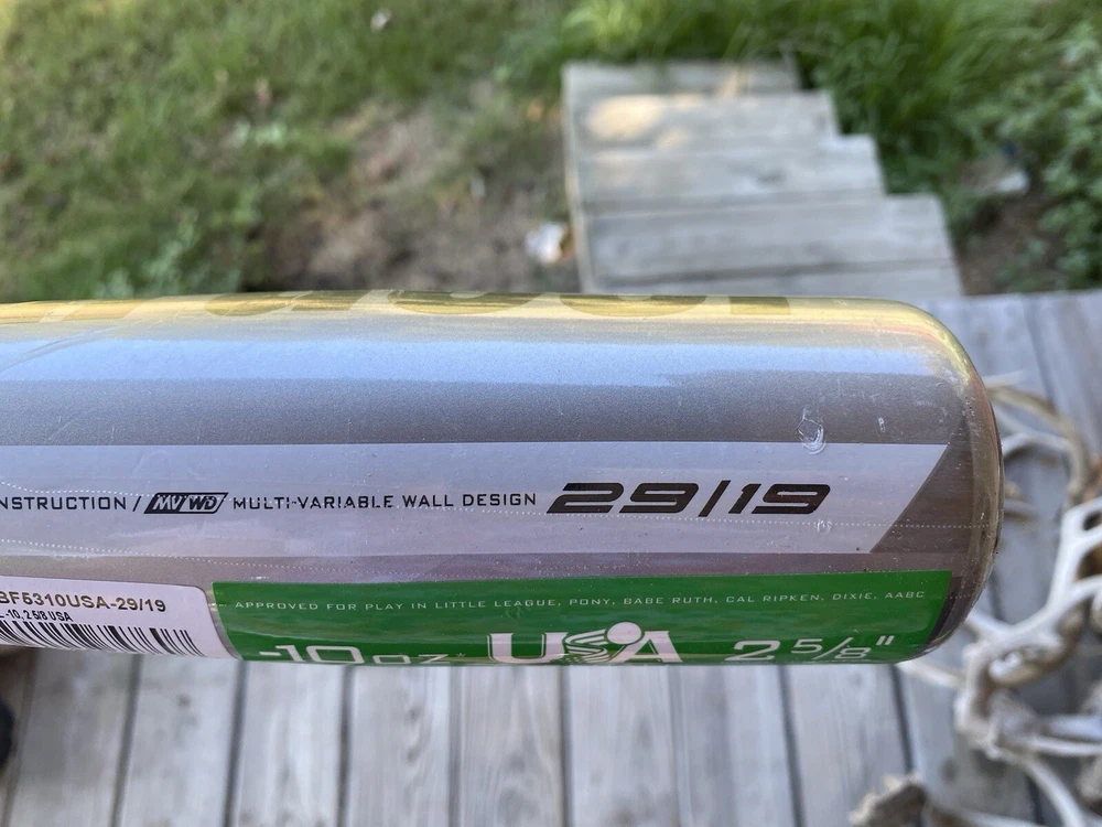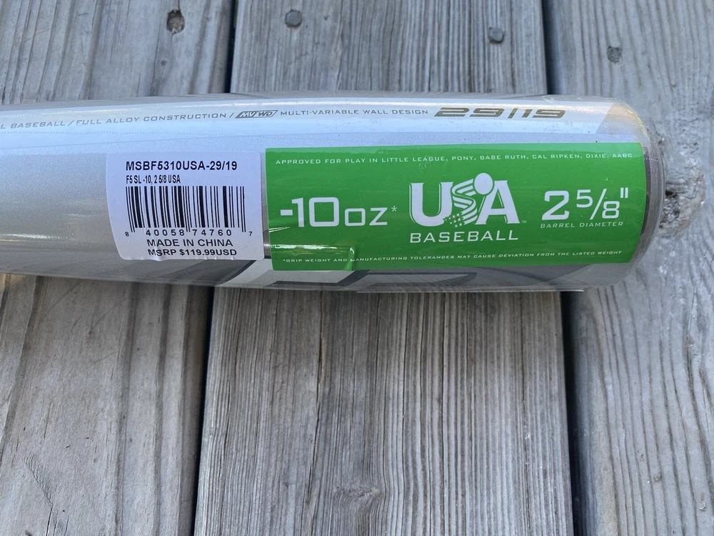 Age Group: Youth Barrel Diameter: 2 5/8 in Item Length: 29 in Brand: Marucci Model: MSBF5310USA Sport/Activity: Baseball Item Weight: 19 oz Association: USA Baseball (USAB) Material: Metal Alloy Swing Weight: Balanced