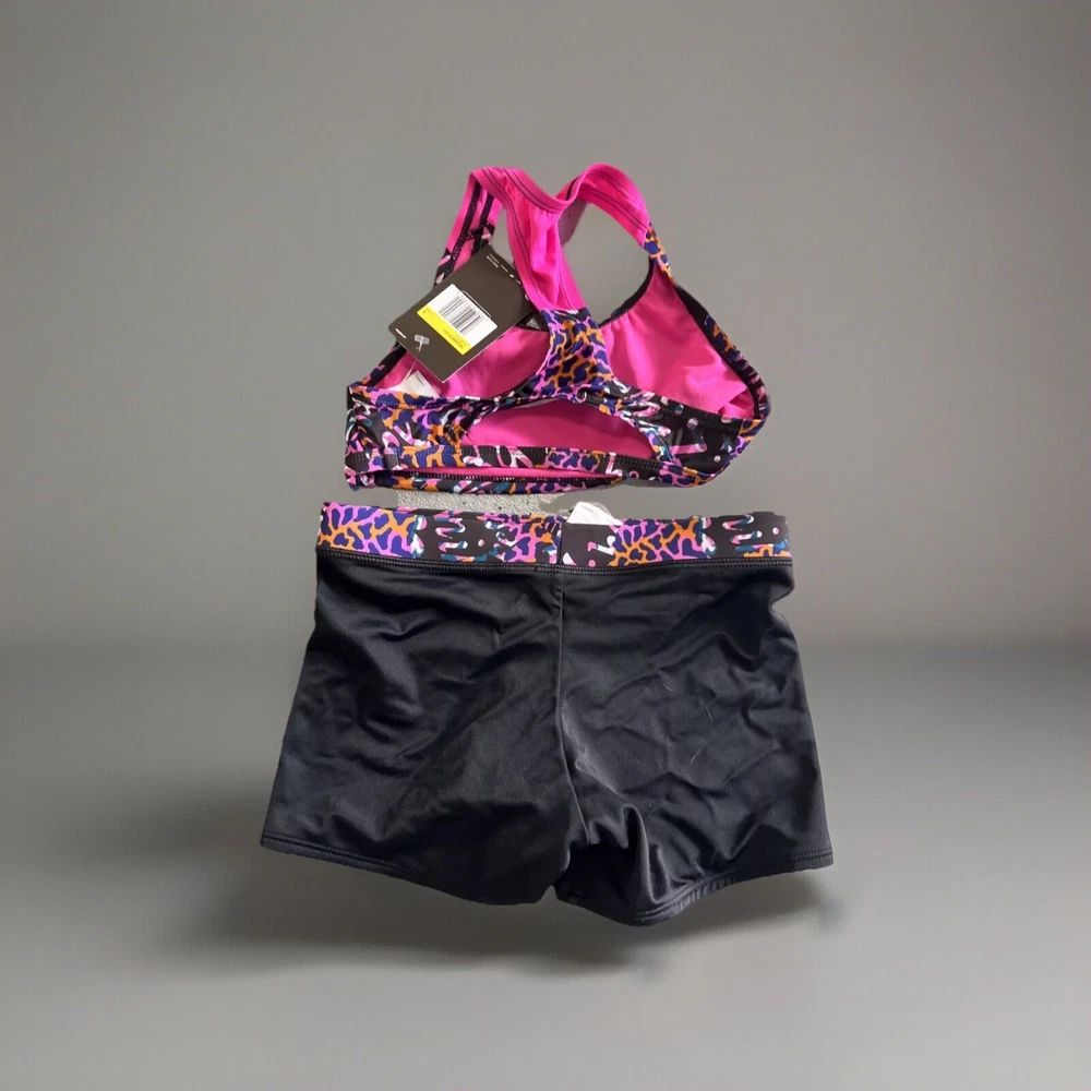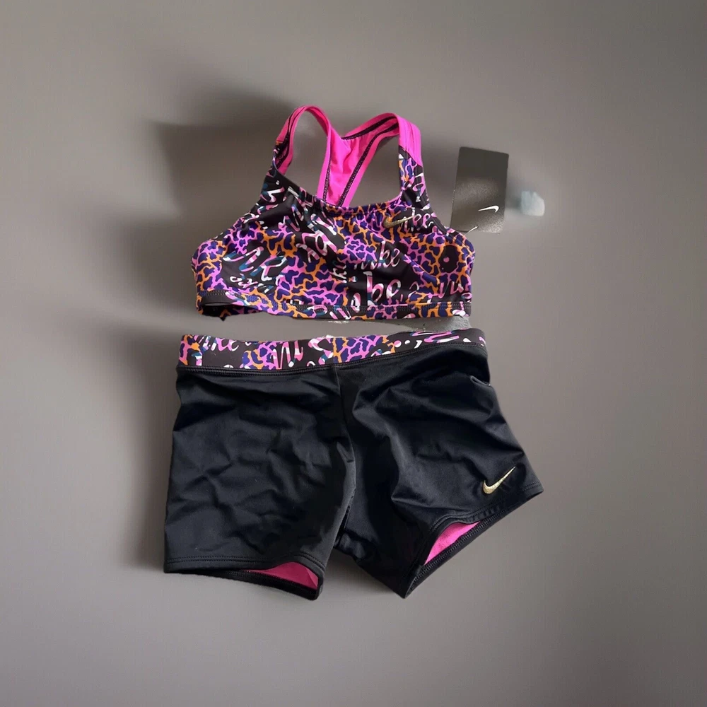 This Nike Girls Swim Set in size small is perfect for your little athlete. The set includes a colorful spandex top with a comfortable athletic style and board shorts for a fun day at the beach or pool. The set features the Nike brand logo and is made with high-quality materials for durability and comfort. The swim set is suitable for girls of all sizes and is a great addition to any young girl's wardrobe. The set is perfect for swimming, splashing, and playing, and will make your little one feel confident and stylish. Get this Nike Girls Swim Set today and give your little athlete the best swimming experience!