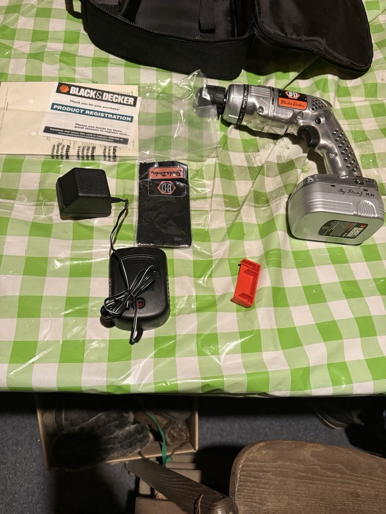 The Brand New Old Stock Black & Decker RD1440 85th Anniversary 14.4V Cordless Drill is a compact drill with a 14.4V nickel-cadmium battery included, making it convenient for various projects. The keyless chuck type allows for easy bit changes, while the brushed motor ensures reliable performance. This drill set includes a battery charger and is perfect for both professionals and DIY enthusiasts looking for a dependable tool with a classic Black & Decker design.