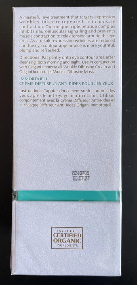Origani Immortajell Eye Cream is a triumph of contemporary skincare. This masterful, rejuvenating eye treatment encourages your skin to ‘act young again’. Origani's laboratories have successfully replicated the cells of the Immortal Jellyfish (Turritopsis Nutricula) which science has proven to achieve potential immortality by actually ‘growing younger’ as time passes. Powerful hexapeptides mimic the powerful cell regeneration of the jellyfish, which boosts cell longevity and encourages a youthful, plump and refreshed eye contour appearance Retail price is 450 AUD!!!