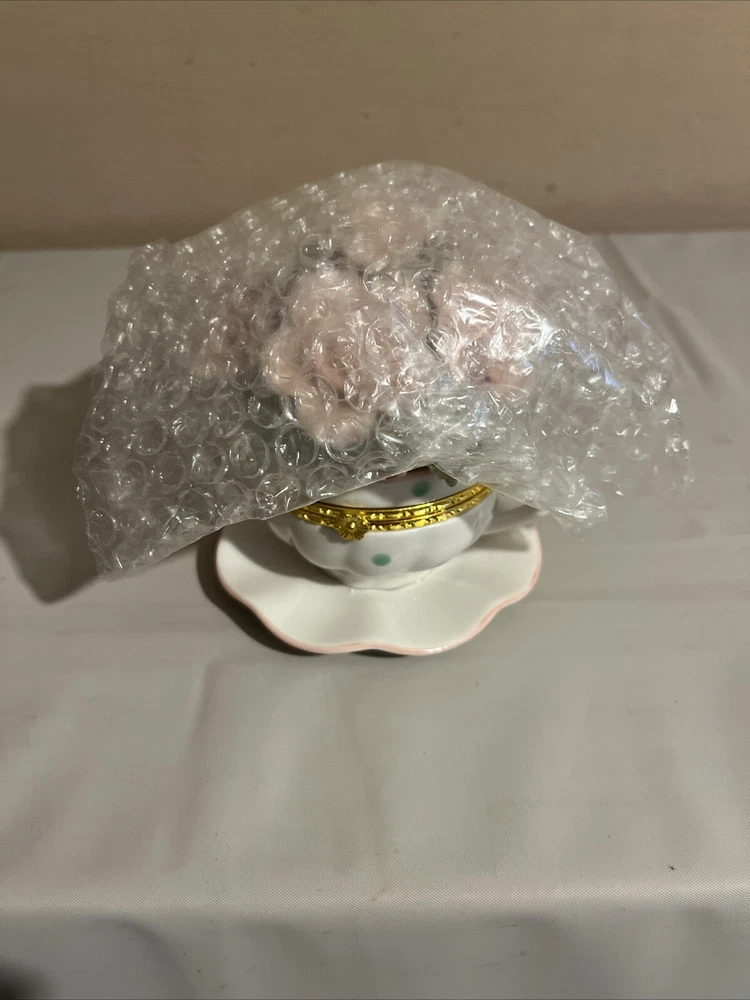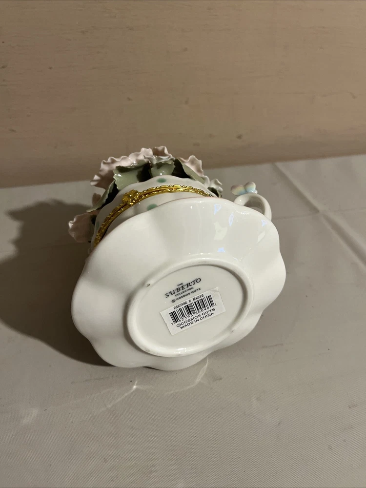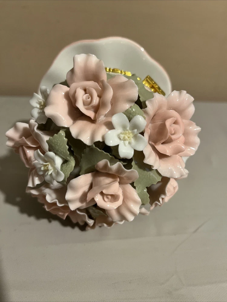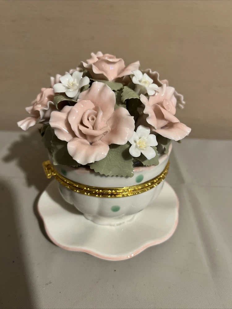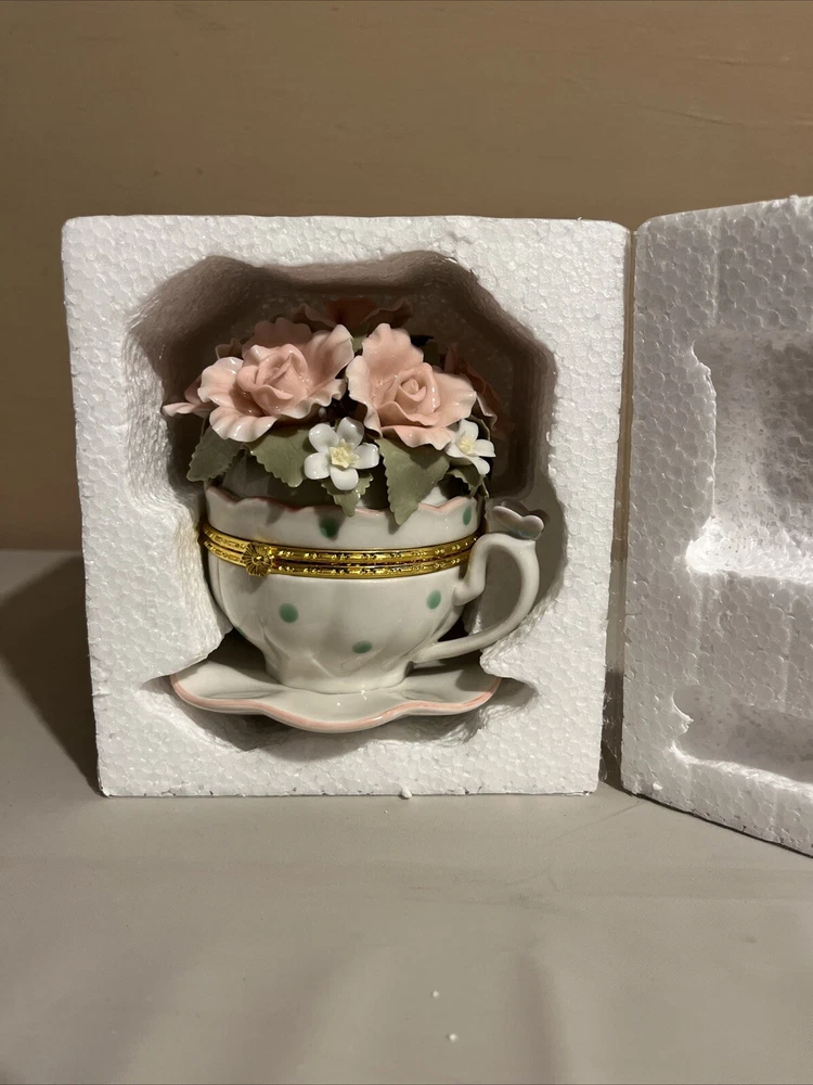Brand New Porcelain Flowers Cup Hinged Music Box "Everything Is Beautiful"