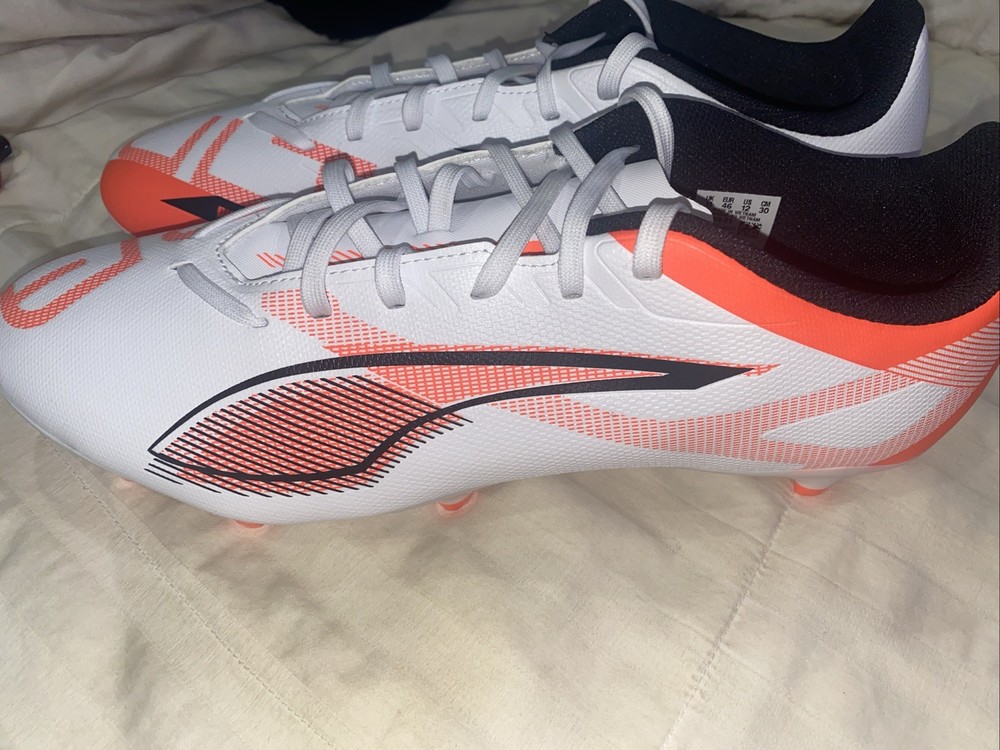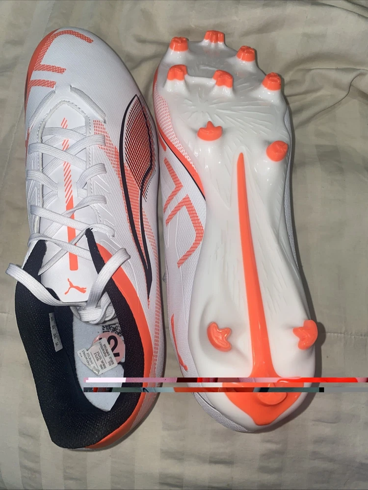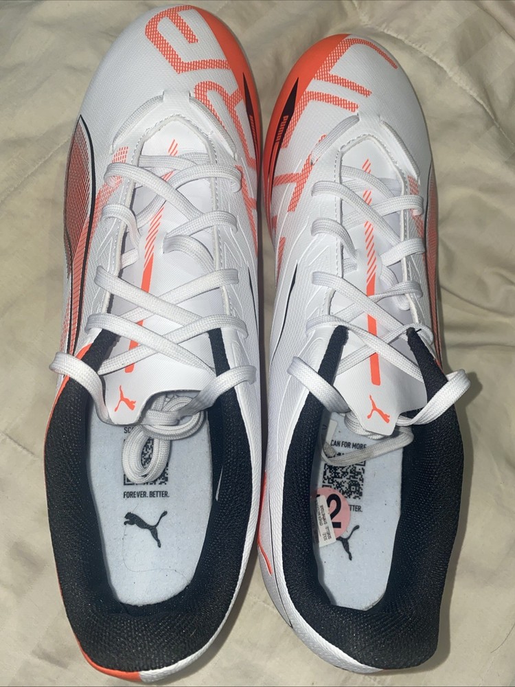The Puma Ultra 5 Play FG/AG soccer cleats in size 11 Men’s are brand new and feature a sleek white design. These cleats are specifically designed for soccer players seeking high performance on the field. The Puma Ultra Play FG/AG 107423-01 model offers a standard width and is part of the Puma Ultra Play FG/AG product line, known for its quality and durability. With the iconic PUMA brand and focus on soccer as the main sport, these cleats are a must-have for any dedicated player looking to elevate their game.