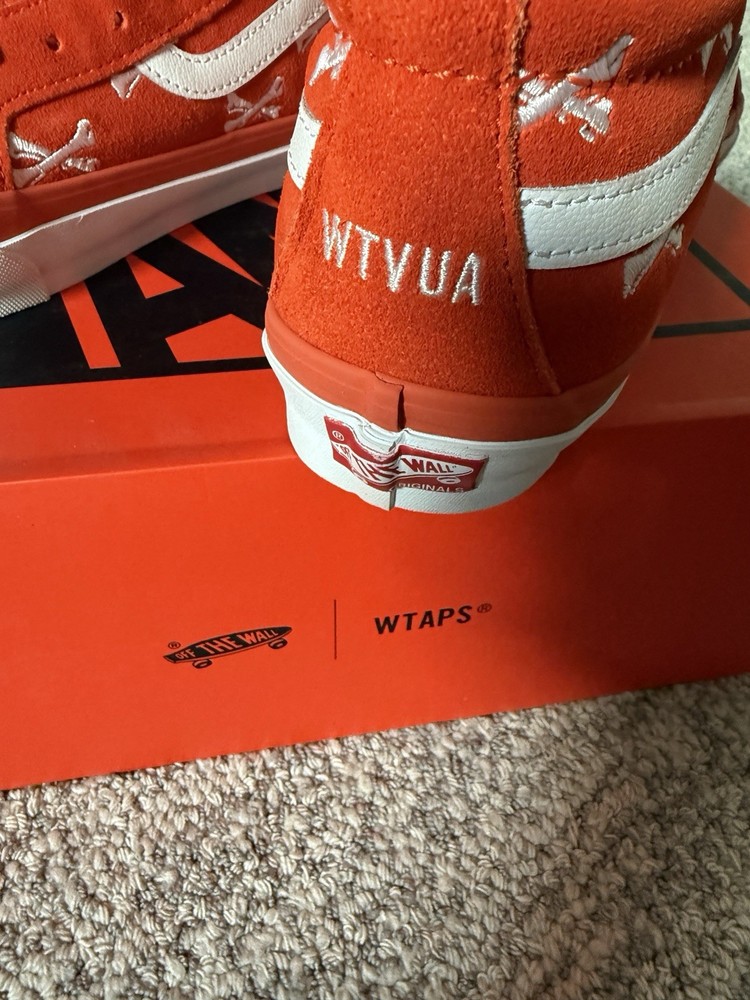 The product is a brand new pair of VANS Sk8-Hi x WTAPS sneakers in size 11. This collaboration between VANS and WTAPS offers a high top style with an orange color scheme, making it a unique and stylish addition to any athletic shoe collection. The release year is 2020, and these sneakers are sure to ship out the next day for quick delivery to any fashion-forward man looking to add a pop of color to their footwear assortment.
