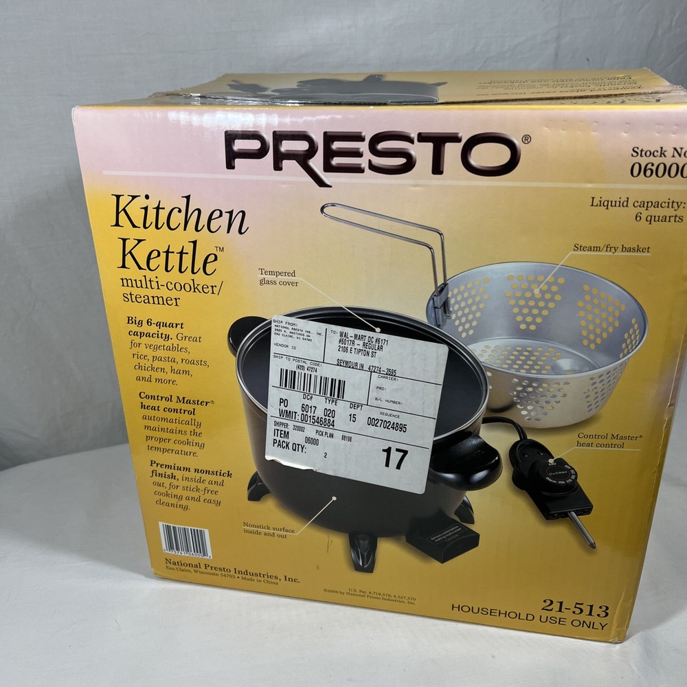 Brand New Vintage Presto 06000 Black Kitchen Kettle Multi-Cooker Sealed