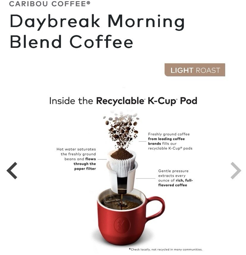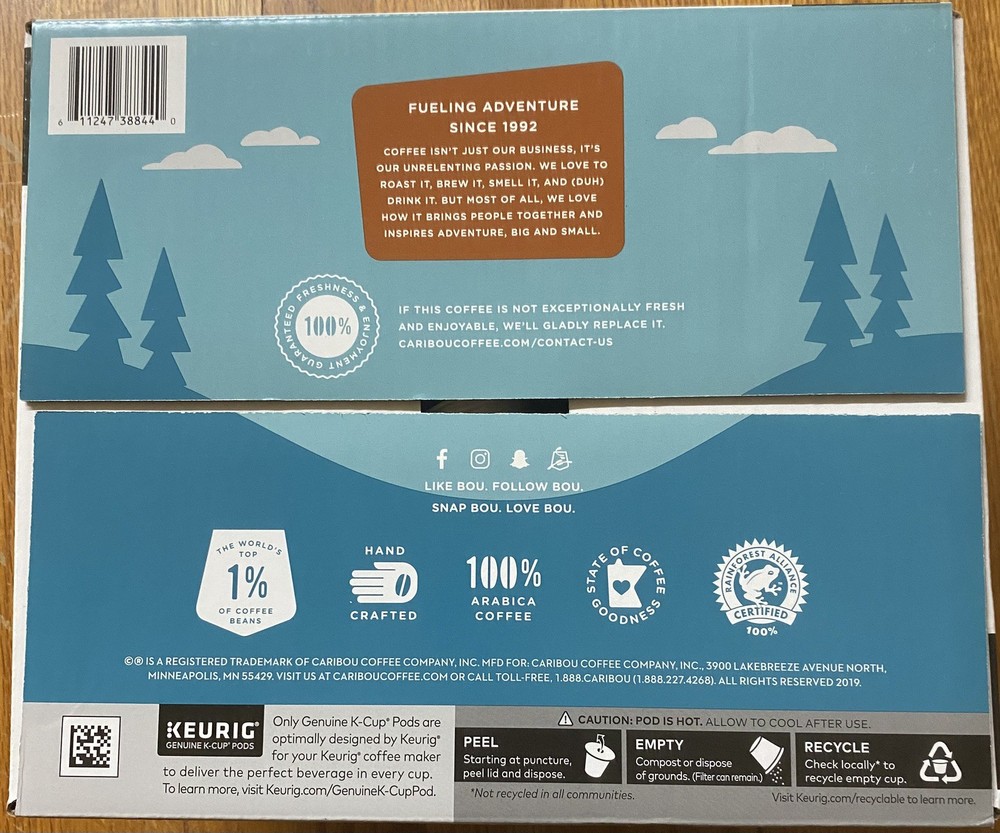 Calories per Serving:Less Than 50Serving Size:1 CupFood Aisle:PantryFood Specifications:KosherAllergens:CeleryCalories per 100 g/mL:BrownProduct:Coffee Pod & CapsuleCompatibility:KeurigBrand:Caribou CoffeeCourse:K-CupRoast:Light