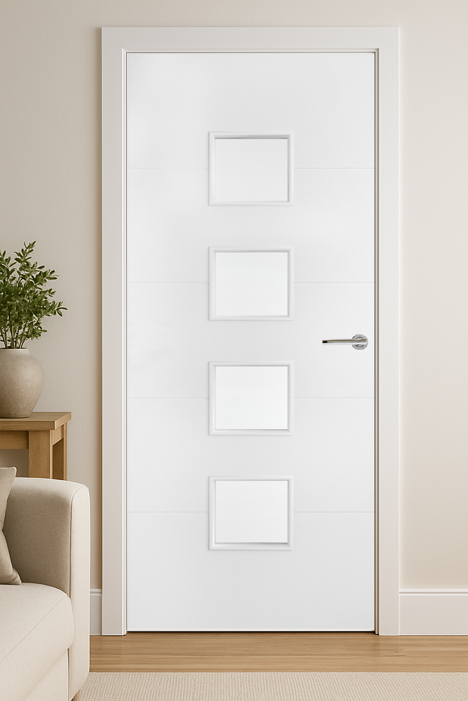 Branded White 4 Clear light Unfinished Internal FD30 Fire door + Nationwide Delivery This Branded White FD30 Fire Door offers a clean, modern look with four clear glazed panels that brighten interior spaces while maintaining essential fire safety. Supplied unfinished, it’s ready for your preferred paint or coating, making it easy to match any interior scheme. Ideal for offices, commercial spaces, and residential settings, the door provides 30 minutes of certified fire protection without compromising on style or versatility. Key Features & Benefits: FD30 Fire Rating: Delivers 30 minutes of certified fire resistance for compliance and safety. 4 Clear Glazed Panels: Maximises light flow and visibility between rooms. Unfinished Surface: Ready to be painted or finished to suit your décor. The door comes without handles. Clean, Modern Design: Complements both contemporary and traditional interiors. Durable Construction: Built for strength and reliability in high-use environments. Nationwide Delivery: Convenient delivery available across the UK. 48hr Delivery Mon-Wed-Fri (Order Before 12) Contact us For more information, please don't hesitate to contact us Return Policy Thank you for choosing us! Please review our return policy: Damaged Items: Any damage must be reported to us within 24 hours of the delivery date. Failure to do so may affect your eligibility for a return or refund. Unwanted Goods: If you wish to return unwanted goods, a 15% restocking fee will be applied, along with any postage costs. Return Address: Please return unwanted goods or damaged items to the following address: Unit 2a, Brixham Rd, Manchester M16 0YG DoorDirect Ltd Tracking: Please ensure you track your parcel using the provided tracking number. This will help you monitor the delivery status and avoid any issues. Missed Deliveries: If you miss your delivery, an additional fee will be required to arrange a redelivery. If you have any questions or need assistance, please don’t hesitate to contact us