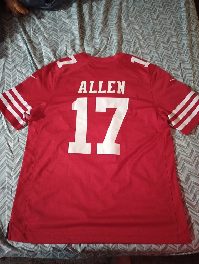 Show your love for the San Francisco 49ers with this Brandon Allen Nike jersey. Made for football fans, this jersey is perfect for those who want to represent their favorite team on and off the field. The jersey features the Nike logo and the San Francisco 49ers logo, making it a must-have for any fan of the team. Whether you're going to a game or just want to show off your love for the team, this jersey is perfect for you. It's made from high-quality materials and is designed to be comfortable and durable. Get your hands on this Brandon Allen Nike jersey today and show your support for the San Francisco 49ers!