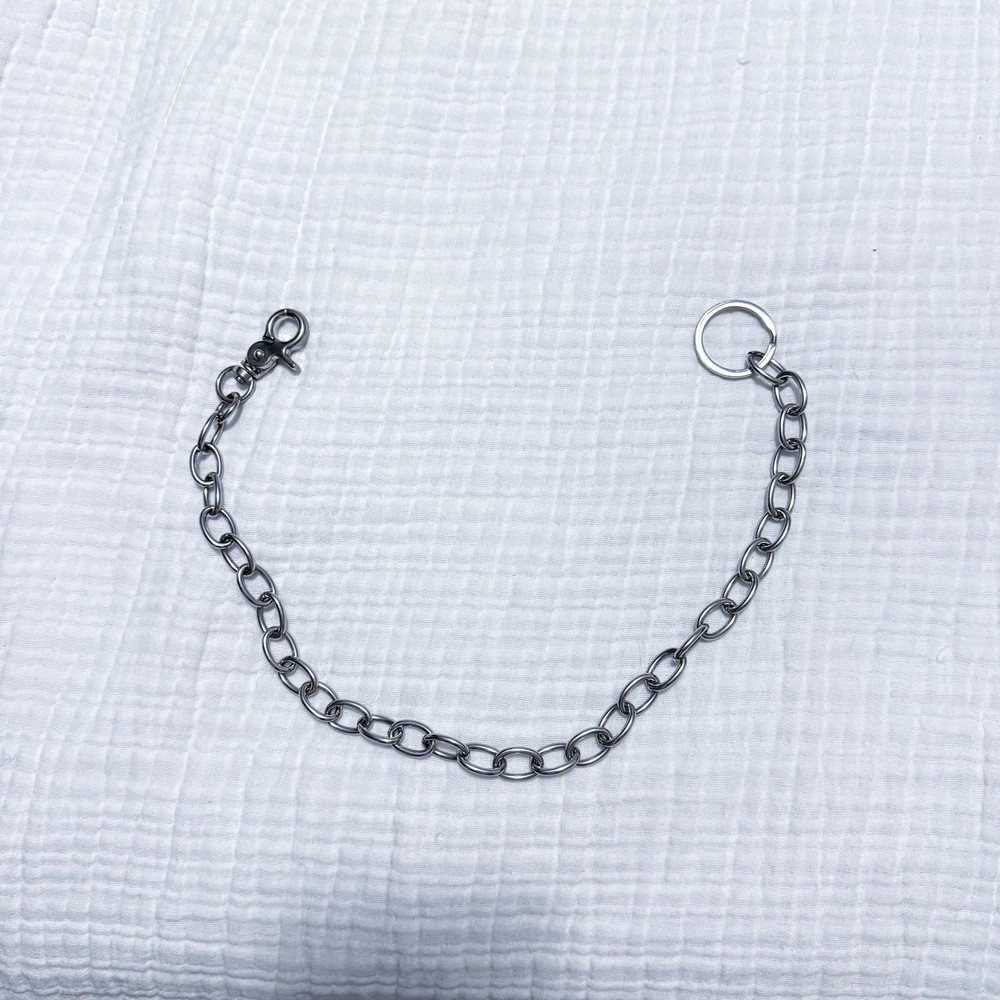 Elevate your accessory game with this stylish Brandy Melville Silver Wallet Side Chain Clasp and Wallet Hoop. Perfect for women who love to keep their essentials close, this key chain features a detachable wallet hoop with a ring and clasp accent. The stainless steel material ensures durability while the silver color adds a touch of elegance. The wallet hoop is perfect for festivals and celebrity-themed events, with a solid pattern and a one-size-fits-all design. This key chain is a must-have for any stylish woman who wants to add a touch of sophistication to her accessories. Made in China, this item is not handmade and cannot be personalized. Good used condition - all wear is pictured please let me know if you have any questions 🥳