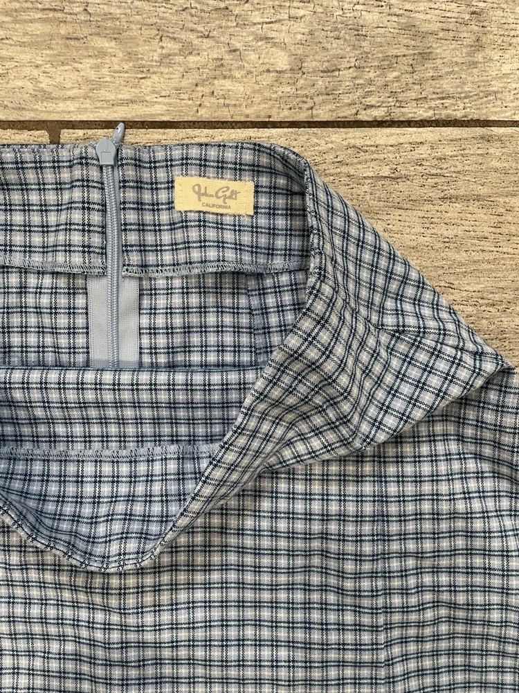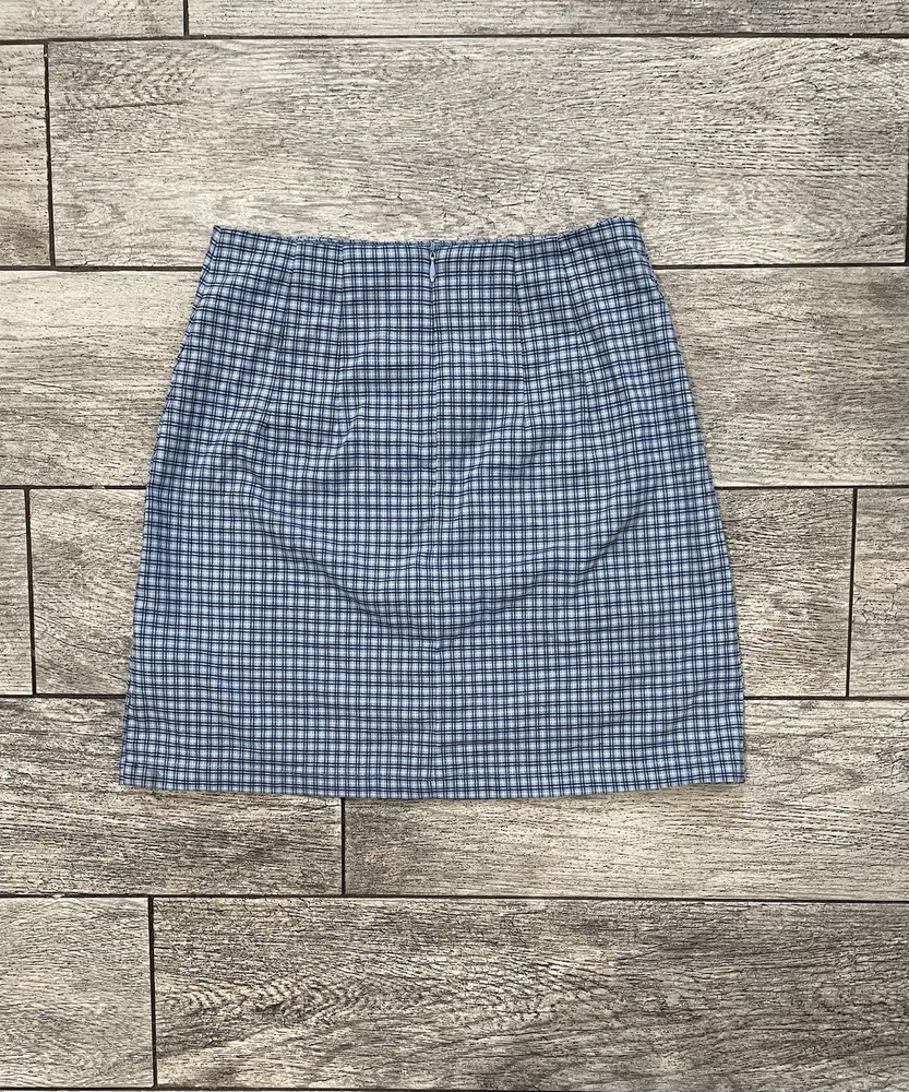The Brandy Melville blue and white plaid skirt is a stylish addition to any young woman's wardrobe. Made of polyester knit fabric, this mini skirt features a zipper closure and a slit detail, perfect for a casual occasion. The preppy theme and blue character make it ideal for wearing in the spring, summer, or fall seasons.