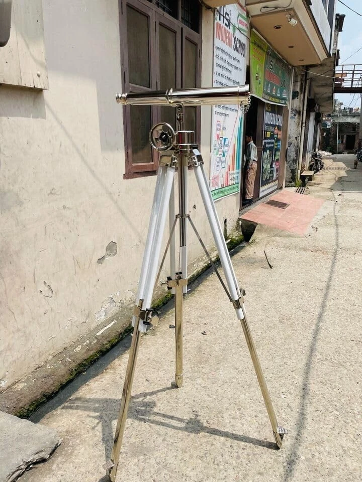 Brass Binoculars Super Zoom Telescope Great Gift Bird Watching Adjustable Tripod Details - Material : Brass,Glass & Wood TUBE LENGTH OF BINOCULAR :18 Inch/46 cm Approx Magnification : 25 x Approx Maximum Adjustable Height : 60" inch Approx The focus is adjusted by rotating the threaded section near the eyepiece. Vintage-inspired brass binocular with included tripod for stable viewing High-quality optics deliver crisp, clear images with impressive magnification Perfect for nature enthusiasts, birdwatchers, and hobbyists Makes a thoughtful and timeless gift for friends and family Makes a thoughtful and timeless gift for friends and family A Fine quality Handmade Item.100% Hand Crafted in India. A reproduction Shipping : All ordered items shipped within 3-4 working days after receiving payment confirmation through PayPal. We use reputed couriers to ship our shipments like FedEx, DHL, TNT or EMS. Tracking number will be provided after dispatching the parcels . * Normal delivery time is 8-12 working days from the time of item dispatch. Please note, delivery time can take more time in some different transit conditions like custom clearance, lack of proper address, address change or some other reasons - Contact Us : If you have any query or problem then feel free to contact us through eBay Message system Or Click on "Ask a Seller" tab below each listing. We reply within 24 hours. Import Duties or Taxes : Please Note Import Duties taxes, Vat, quarantine fees, address change fees, or any other taxes are not included in the item price or in shipping charges. These charges are the buyer's responsibility. You are requested to please check with your country's custom office to determine what these additional cost or taxes etc before bidding / buying this item(s) Feedback : If you feel any problem in product please immediately contact us as we ensure fast and best solution for any problem got in our product !! SPECIAL DISCOUNT FOR WHOLESALE & BULK INQUIRIES !! Thanks for Visiting