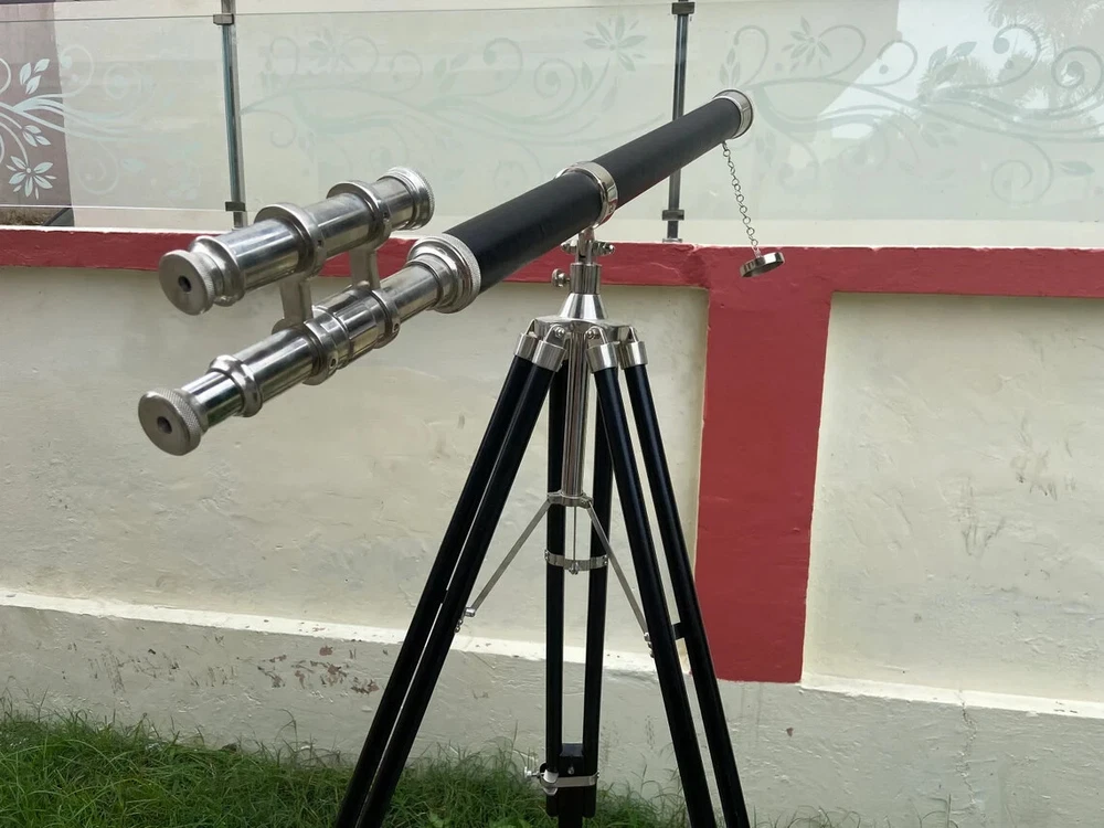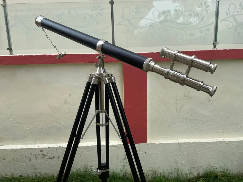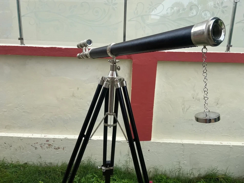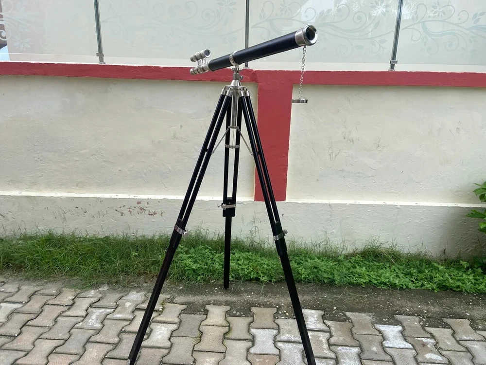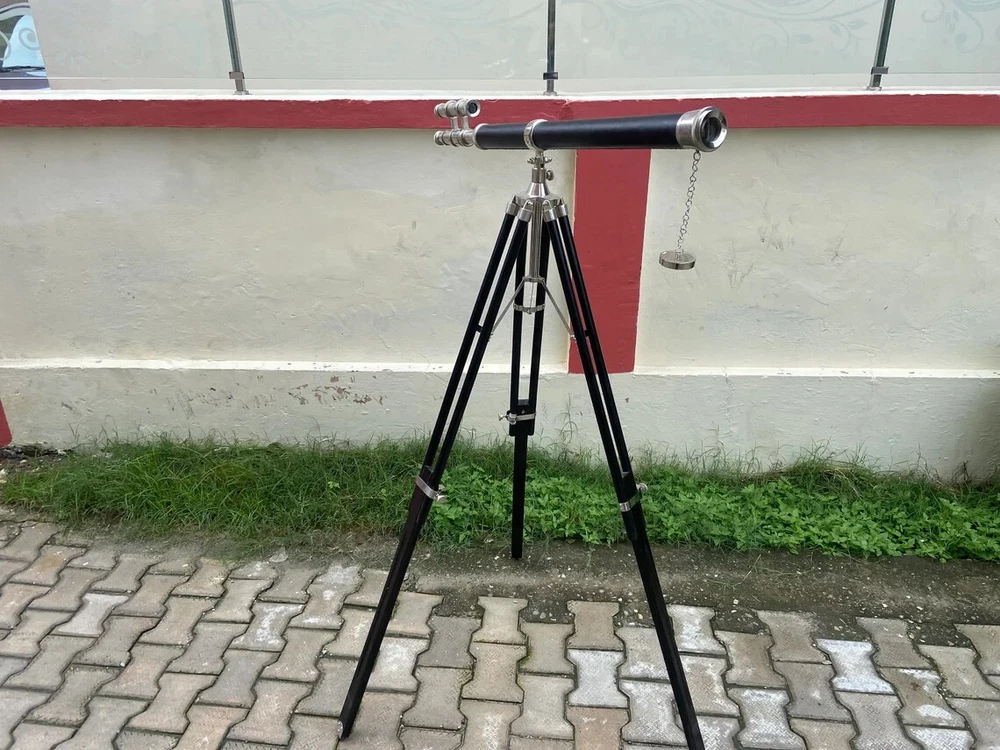 Brass Double Barrel Telescope with Wooden Tripod Home & Office Decor harbormaster vintage Spyglass Details : Material: High-Quality Brass, Wood & Leather Magnification : 15 x Approx. Size :- 39 X 28 X 65 inches inches Approx. Color: Silver & Black A Fine quality Handmade Item.100% Hand Crafted in India. A reproduction Shipping : All ordered items shipped within 3-4 working days after receiving payment confirmation through PayPal. We use reputed couriers to ship our shipments like FedEx, DHL, TNT or EMS. Tracking number will be provided after dispatching the parcels . * Normal delivery time is 8-12 working days from the time of item dispatch. Please note, delivery time can take more time in some different transit conditions like custom clearance, lack of proper address, address change or some other reasons - Contact Us : If you have any query or problem then feel free to contact us through eBay Message system Or Click on "Ask a Seller" tab below each listing. We reply within 24 hours. Import Duties or Taxes : Please Note Import Duties taxes, Vat, quarantine fees, address change fees, or any other taxes are not included in the item price or in shipping charges. These charges are the buyer's responsibility. You are requested to please check with your country's custom office to determine what these additional cost or taxes etc before bidding / buying this item(s) Feedback : If you feel any problem in product please immediately contact us as we ensure fast and best solution for any problem got in our product !! SPECIAL DISCOUNT FOR WHOLESALE & BULK INQUIRIES !! Thanks for Visiting