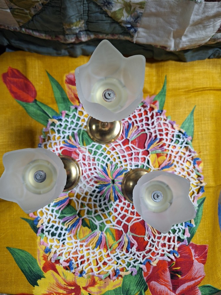 The Brass And Frosted Tulip Shaped Glass Tea Light is a decorative candle holder that features a tulip-shaped glass design with a frosted finish. The combination of brass and frosted glass gives the piece an elegant and timeless look, making it a stylish addition to any home decor. This tea light holder is perfect for creating a warm and cozy atmosphere when lit, making it a charming piece for both everyday use and special occasions.