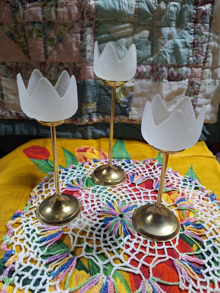 Brass Frosted Tulip Glass Tea Light Holder for Candles