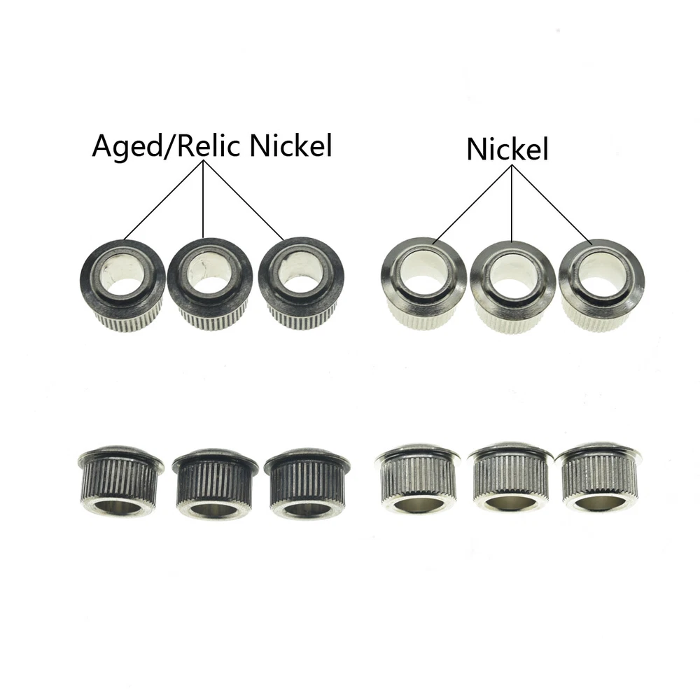 Brass Vintage to Modern Guitar 3/8" Tuner Conversion Bushings Relic Nickel Product Description KAISH premium solid brass conversion bushings with O.D. 10.2mm for installing various vintage tuners on modern heardstock with 3/8"(10mm) tuner holes; Super conversion bushings at competitive price 6.2mm(0.24") I.D. bushings are used for Wilkinson vintage style tuners/Gotoh SD Series vintage style locking tuners(not for Gotoh standard vintage tuners)/various import vintage style tuners with 6mm string posts 6.5mm(0.25") I.D. bushings are used for most USA vintage tuners(Fender/Gibson)/Gotoh SD Series standard vintage tuners(not for Gotoh locking tuners)/Kluson vintage tuners with 6.3mm string posts Make sure to measure the diameter of your vintage tuner's string posts as well as existing holes in your guitar's headstock, and choose correct size(inner diameter) bushings accordingly Nice finished durable conversion bushings, no burrs, solid brass construction and well built, easy to install, press-fit "drop in" bushings Package Includes Package includes 6pcs Bushings Payment Policy We accept Paypal only. Payment must be received within 5 days after auctions ended. Unpaid dispute will be filed to eBay for the non payable bidders. Shipping and Handling We ship in 2 business days . Most of our items are shipped via ordinary economy Air Post without a tracking reference, if you want to add a tracking reference to your package, additional $4.00 will be needed for shipping. Please pay much attention to this term before you purchase. We dont accept combine shipping. If you want to request for wholesale quotation, please contact us to confirm shipping fees first. Import duties, taxes and charges are not included in the item price or shipping charges. These charges are the buyer ' s responsibility. Please check with your country's customs office to determine what these additional costs will be prior to bidding/buying. We will ship to the address you entered during checkout process, rather than your PayPal shipping address. This is an international post from China to Worldwide.The normal delivery time is about 10-20 business days to United Sates and 15-25 business days to other countries, please generous understand that. Return Policy Inspect your order immediately once you receive them. All claims (damaged, missing or wrong items) must be filed within 7 days from the date you receive them. Defective Order: If the order you received has a manufacturer's defect, please email us pictures of the defective item immediately. We do need you to send back the defective part before we ship you a replacement. As soon as we receive the defective part and inspect it, we'll get a replacement on its way to you. Damaged in Transit: Inspect your package(s) before you accept it. If you see any damage and/or evidence of tampering on the outer packaging you MUST make sure that the delivery person makes a note of this damage on the delivery receipt. Once you've made sure the note of damage is on the delivery receipt, tell the delivery driver that you refuse to accept the damaged package, then contact us immediately. As soon as we confirm with our carrier, we'll get a replacement on its way to you. Missing Orders: If you received a partial order, contact us immediately. In this case, please email us pictures of the partial order you received. As soon as we confirm with our shipping dept., we'll get a replacement on its way to you. Wrong Orders: If you receive an item that you did not order, contact us immediately. In this case, please email us pictures of the item you received. As soon as we confirm with our shipping dept., we'll get a replacement on its way to you. Feedback We appreciate all the business with our customers, if you are satisfied with our items and service, please leave a positive feedback and give us 5 star rating scores. If you have problems, please make sure to contact us first and we will try our best to resolve the problems. Contact Us If you have any questions or problems, Please feel free to contact us, We will response you in 24 hours. Please check our terms and descriptions carefully before you bid.