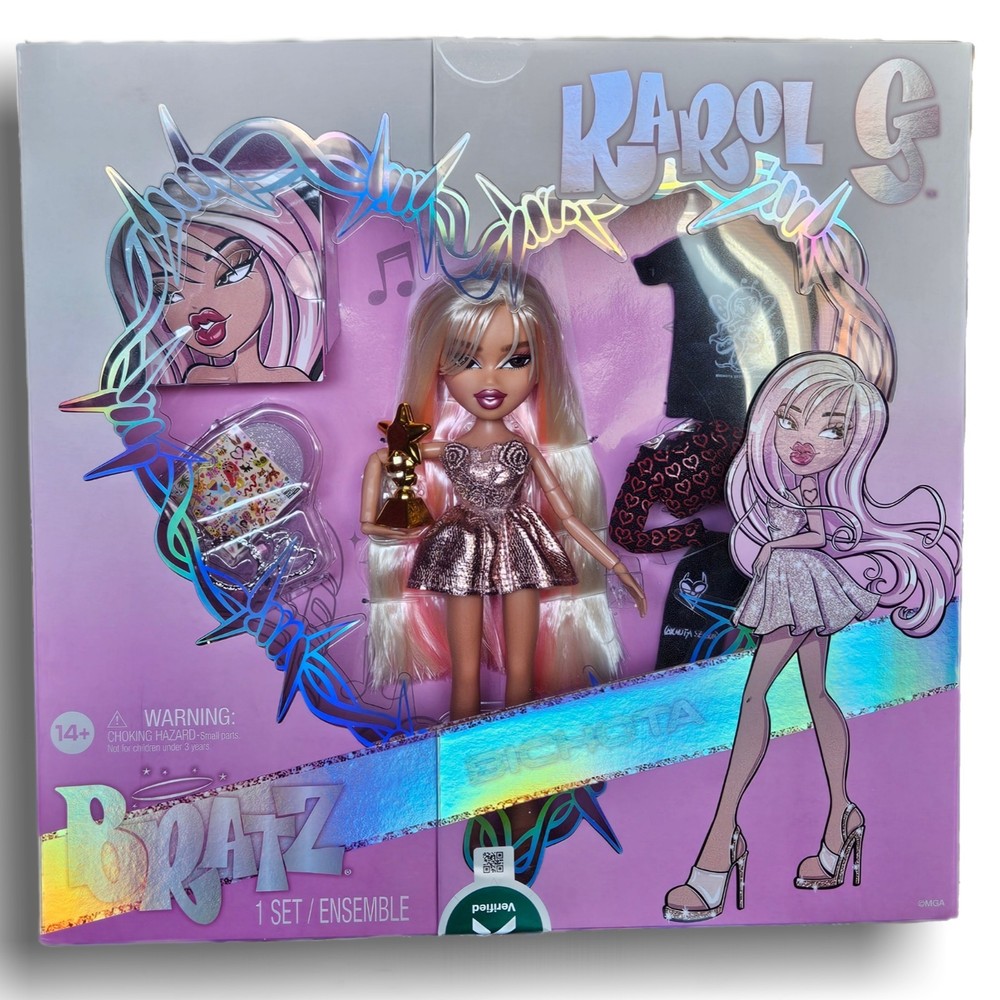 The Bratz Doll x Karol G Bichota Limited Edition is a collectible item celebrating the Grammy-winning artist Karol G. This special edition doll is part of a unique collaboration between Bratz and the popular singer, making it a highly sought-after piece for fans and collectors. With a release year of 2024, this limited edition doll embodies the vibrant and edgy style that both Bratz and Karol G are known for, making it a must-have for any avid collector of contemporary pop culture memorabilia. Sealed in box, verified.