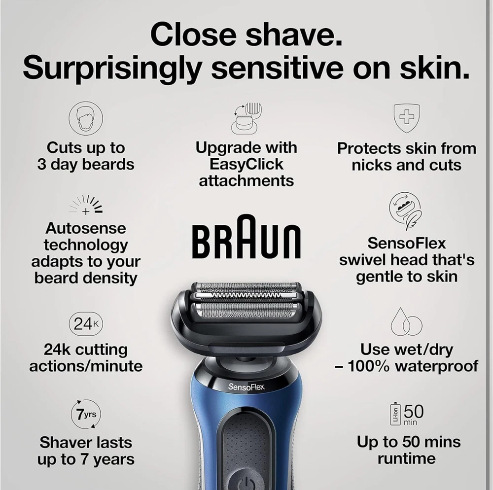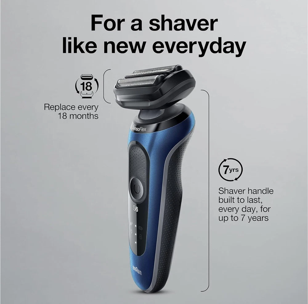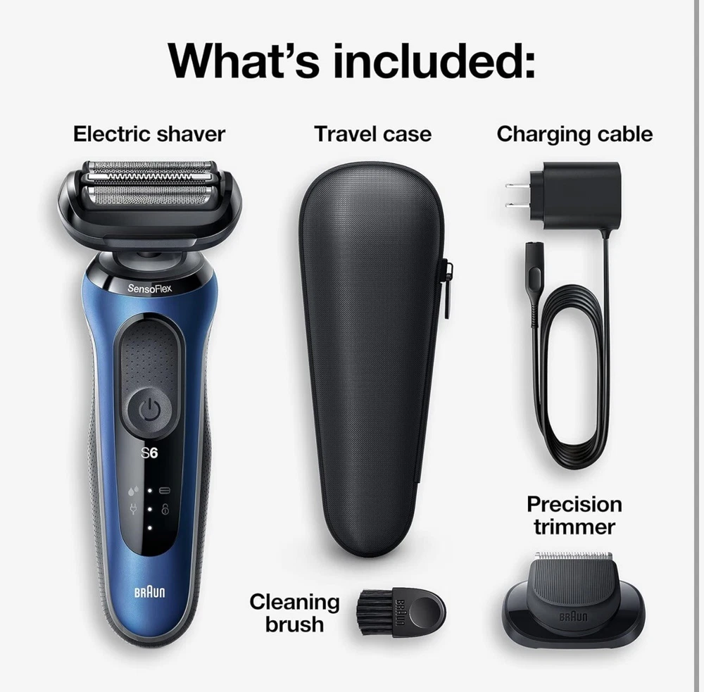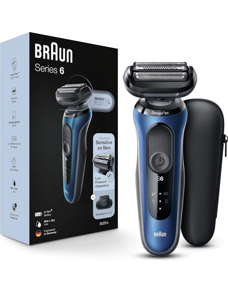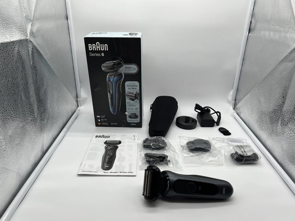 Braun Series 6-6020s Men's Rechargeable Wet & Dry Electric Foil Shaver (S3(9) Used, tested it works. Included: Precision Trimmer attachment for moustache and sideburns trimming Electric shaver for men with SensoFlex: the dermatologically tested swivel head adapts to minimize skin pressure for sensitive skin SensoFoil blades are specifically designed for closeness and skin comfort Li-Ion Battery for up to 3 weeks of shaving (50 min). 5 min quick charge for one full shave 100% waterproof electric razor for Wet & Dry use