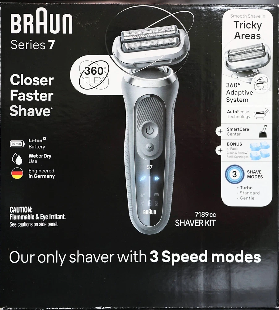 Braun Series 7 360° Flex Wet/Dry Electric Shaver Kit (7189cc) Brand New, Factory Sealed! Box has very minor cosmetic damage