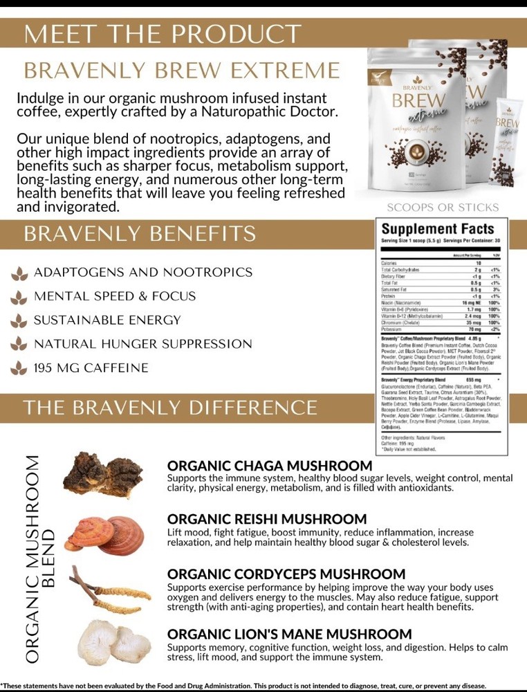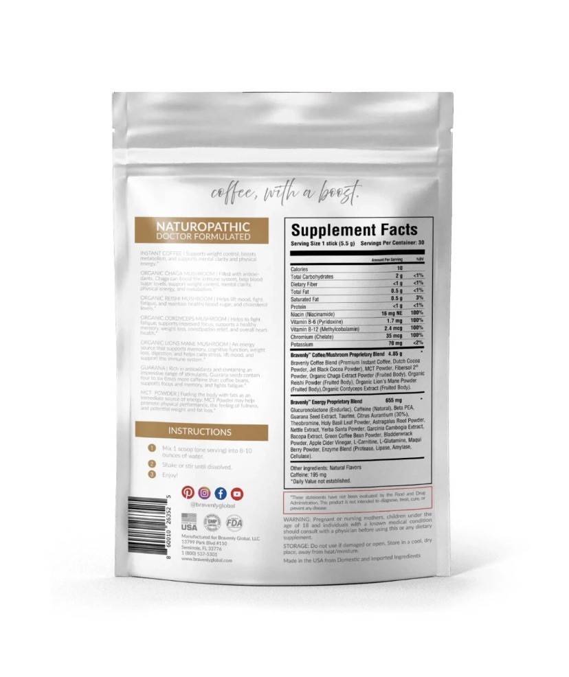 Bravenly Global Brew Extreme Nootropic Instant Coffee Sticks Sealed.