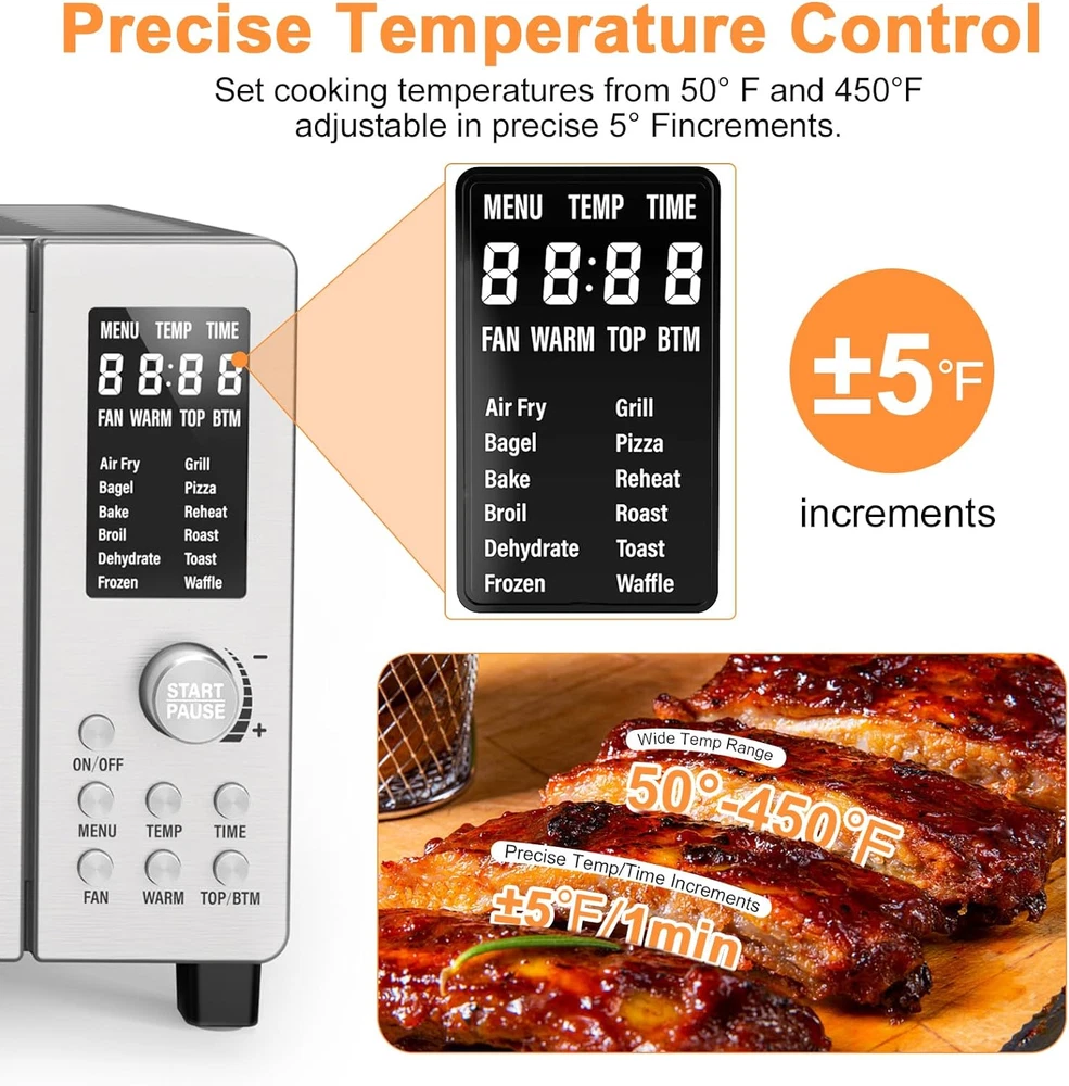 Store New Arrivals Add to Favorite View Feedback Contact Bravo Air Fryer Toaster Smart Oven, 12-In-1 Countertop Convection, 1800 Watts, 21-Qt Capacity, 50°-450°F Temp Controls, Top and Bottom Heater Adjustments 0%-100%, PFAS Free, Stainless Steel Description Item model number Bravo 3 Control Type Push Button and Dial Power Source Corded Electric Color Brushed Stainless Steel Included Components 1 x Air Fry Basket, 1 x Baking Pan, 1 x Heavy-Duty Cooking Rack, 1 x Instruction Manual, 1 x Crumb Tray Country of Origin China Door Style Dropdown Door Material Stainless Steel Item Weight 14.1 Pounds Item Weight 14.1 pounds Door Material Type Tempered Glass Capacity 21 Quarts Wattage 1800 watts Model Name Bravo 3 Temperature Range 50-450 Degrees Fahrenheit Size 21QT Capacity Finish Type Brushed Product Dimensions 13.25"D x 17.75"W x 9.5"H MAKE ADJUSTMENTS ON-THE-FLY – Want hotter temperature or need to cook it longer? No problem. Simply adjust on-the-fly any time. Starting the cooking process over is not necessary. Bravo toaster oven's intuitive digital controls are easy to operate. Control not only the time and temperature but also customize the top and bottom heaters. CUSTOMIZE YOUR PIZZA OVEN: Adjust the ratio of top and bottom heaters from 0 to 100% and convection fan speed for different types of heating zones. To bake a perfect thick pizza, set bottom heaters at 70% power & top heaters at 30% for crispy crunch crust and perfectly melted cheesy toppings. 12 PRE-PROGRAMMED PRESETS - Bravo is programmed with 12 preset cooking functions for air frying, grilling, baking, broiling, roasting, dehydrating, reheating, toasting & more. Simply select the right preset function and let Bravo to do the rest. INTUITIVE DIGITAL CONTROLS - Take control of cooking temperatures ranging from 50°F to 450°F adjustable in precise 5°F increments. Fine-tune your cooking to perfection with precise temperatures. ENHANCED INTERACTIVE DIGITAL DISPLAY - Enjoy a more intuitive, easy to read, and user-friendly cool white display for a seamless cooking experience. The display provides a wealth of information for the ultimate interactive experience. Product Description ABOUT US We offer the best prices around on high quality products. Our E-store includes media such as books, movies, music and games while offering electronics, toys, sporting apparel, clothing, tools, general home, garden items and more. SHIPPING We are always working hard to ensure your package arrives as soon as possible. Please understand that some factors like weather, high postal traffic, and the performance of shipping companies are outside of our control. We offer free shipping to the lower 48 states and ship within 2 business days of payment, usually sooner. We do not accept P.O. Boxes. Please provide a physical address. For shipping outside of the continental USA, we only use eBay's Global Shipping Program.The item is shipped to KY and then sent to the rest of the world. International customers are responsible for all duties and taxes. Continue to check out in order to calculate costs for shipping the item to your country. Messages regarding eBay's Global Shipping Program MUST be directed at eBay EXCLUSIVELY. RETURNS We offer a 30-Day Return Policy on items which you are not completely satisfied with. You have the option for a full-refund or an exchange of the item. No returns are available on items shipped outside of the USA. PAYMENT We accept PayPal. CONTACT US This page content is yet to come Please ad us to your favorite seller and visit again later Thank You CUSTOMER SATISFACTION We try our very best to make sure every customer is completely satisfied. If there's a problem, message us! We're happy to help. WE ACCEPT Copyright © 2021 AutoDS. | All Rights Reserved