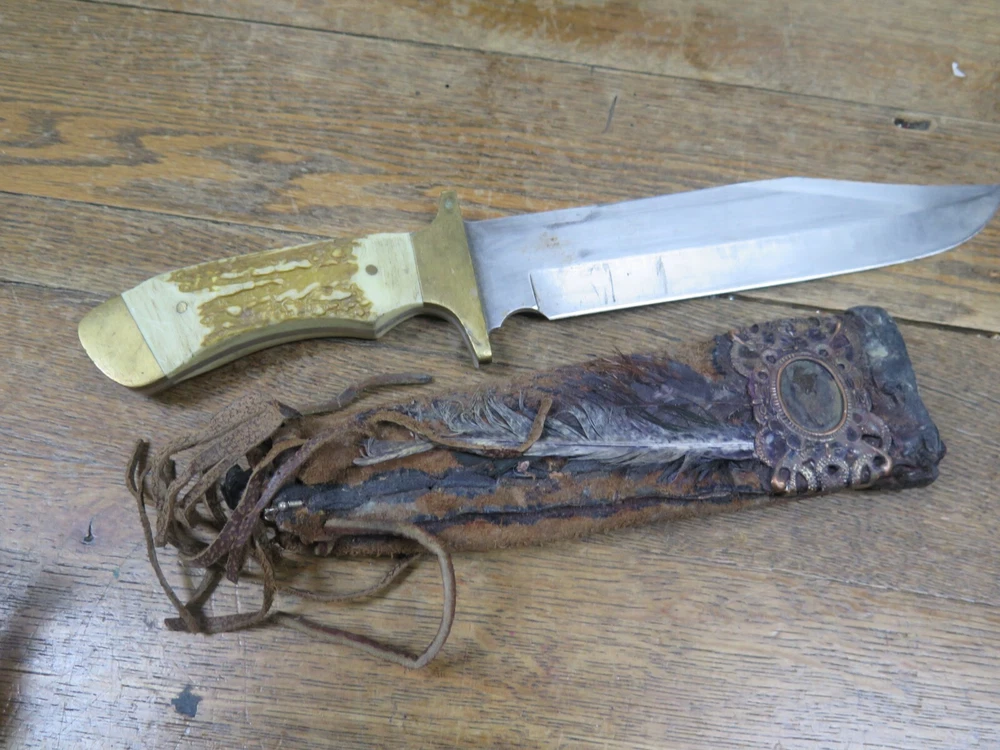 USED ITEM IN GOOD SHAPE, AND A HANDMADE SHEATH, BUYING AS IS NO RETURN ~~ SEE PICTURES OF THE ACTUAL ITEM BEING SHIPPED ~~ WE DO COMBINE SHIPPING