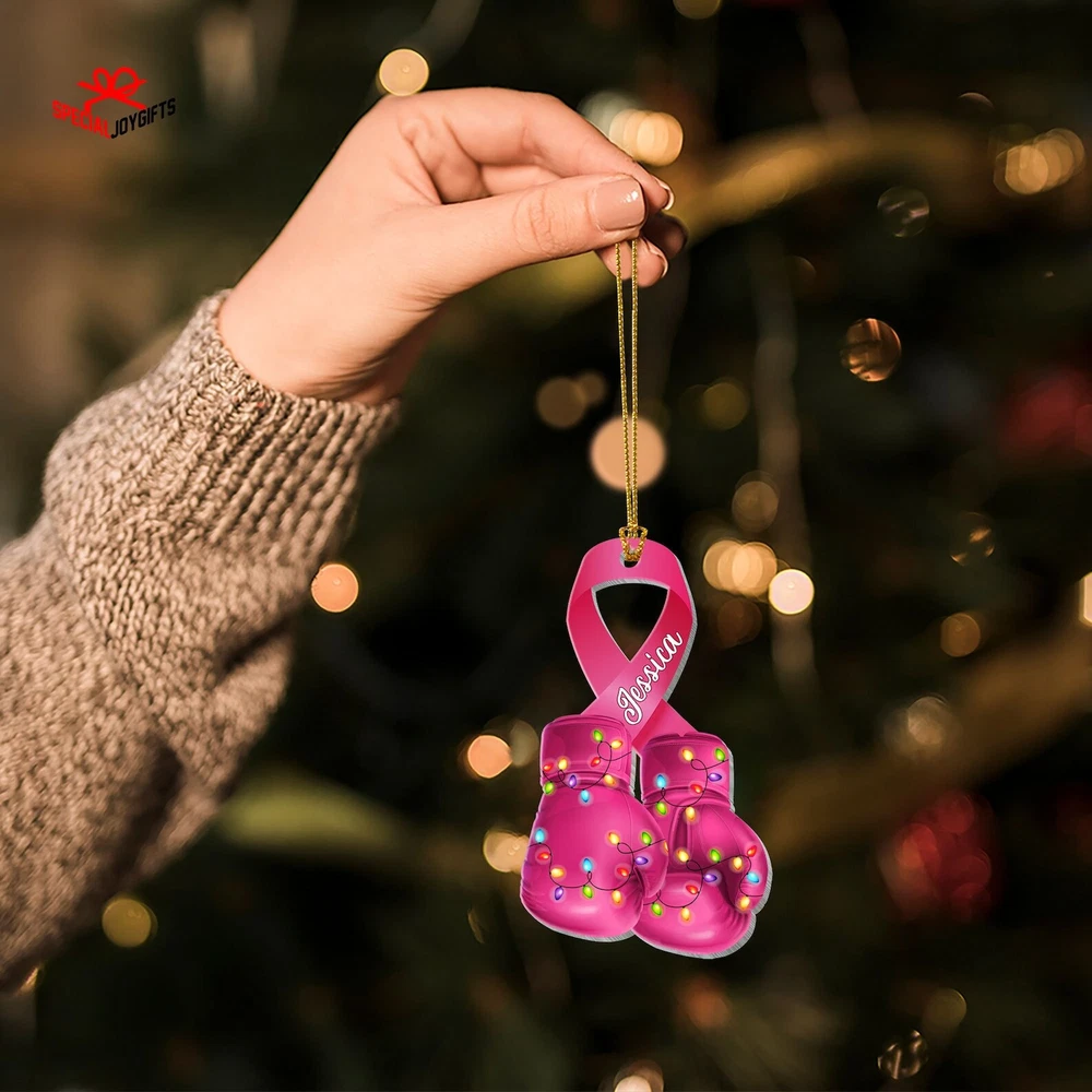 Breast Cancer 2d Flat Printed Acrylic Ornament Not 3d Breast Cancer Awareness Ornament Gifts Pink Boxing Gloves Ribbon Cancer Survivor Gift Material: Ceramic Color: White Shapes: Circle, star, heart and oval Can be printed on both sides Imprint full-color artwork, photos, or logos Hole for hanging string and hanging string included Printed in the USA