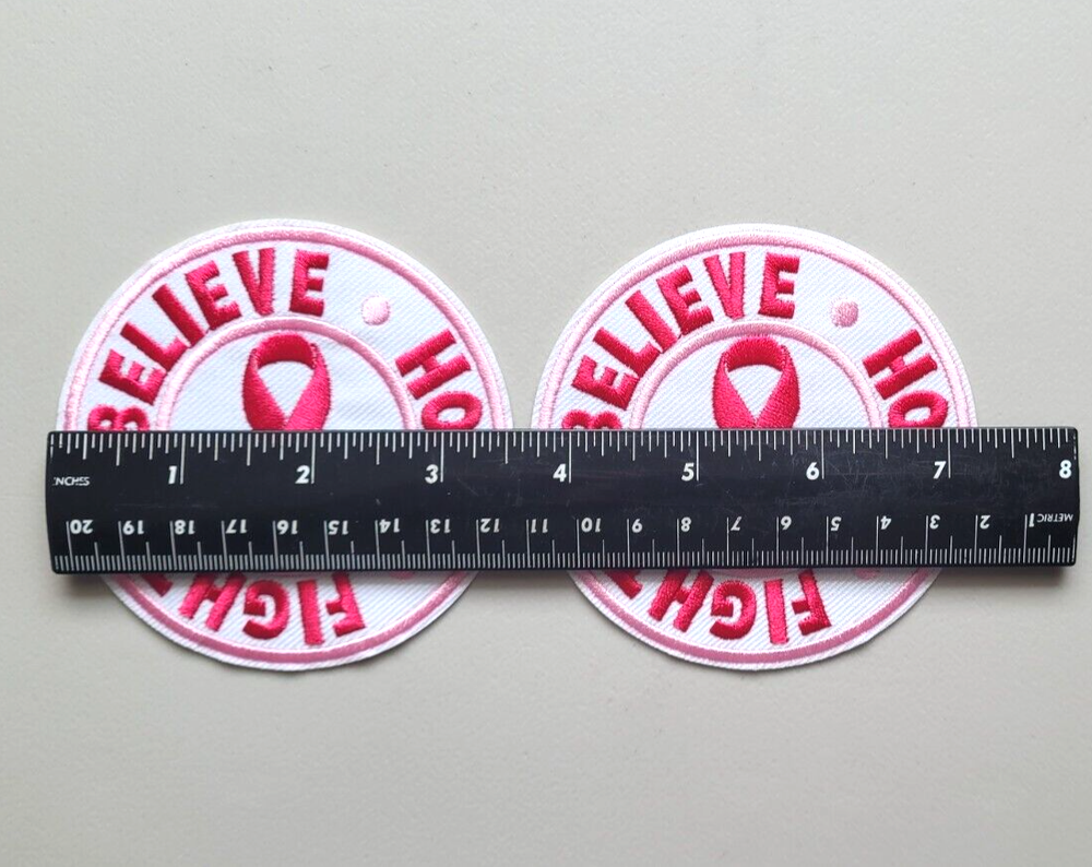 *BREAST CANCER BELIEVE HOPE FIGHT PATCHES* L3A See ruler in pictures for patch sizes 3 1/2 inches round NEW iron on or sew on patches FAST / FREE SHIPPING Patches will be shipped USPS with tracking Check all pictures good before you buy $$$ Check out my other PATCHES for sale in my Ebay store * Buy with confidence see my ratings and feedback * Check out my other items ! I STRIVE FOR A FIVE STAR RATING. THANK YOU. Froo www.froo.com | Froo Cross Sell, Free Cross Sell, Cross promote, eBay Marketing, eBay listing Apps, eBay Apps, eBay Application
