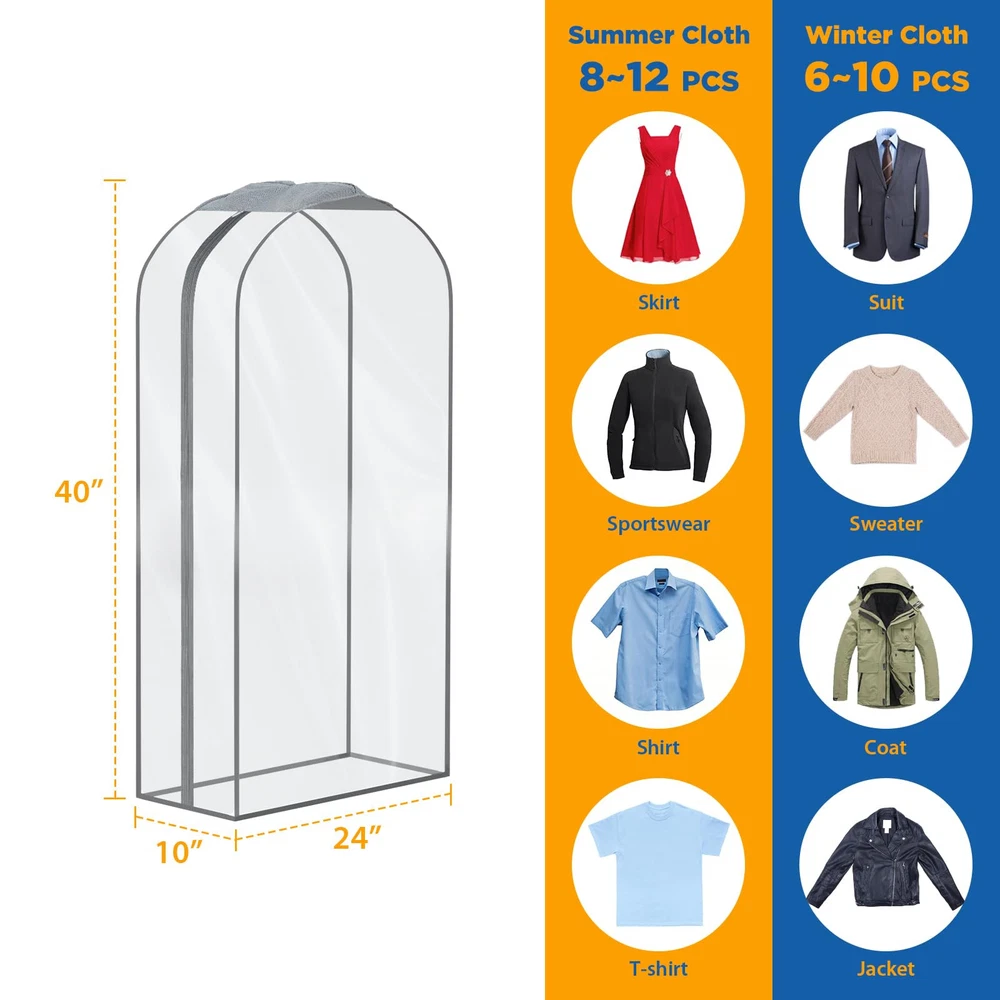【Upgraded Clear & Breathable Fabric】 We've upgraded clear fur coat storage bag with premium PE materials to ensure durability and convenience. The material is hightly breathable,soft, durable and clear, very friendly to leather and fur clothing etc. 【No Squeeze and Wrinkle Free】 Extra large fur garment bag with 10" gusseted can hold about 8-12 summer clothes or 6-10 winter clothes. specialfor fur coat, down jackets no squeeze and wrinkle, even for winter plus size overcoat, mink coat, leather jackets and puffy maxi dresses, each of your fur coat and leather clothing can have their own cover and room to breathe. 【Smooth zipper Easy to Access】 The zipper of the leather jacket storag bag is strong and smooth, with metal stoppers on both ends prevent zipper slip-offs, making a longer service life. Say goodbye to zipper breakage or slipping with our superior quality hanging coat protector zipper bag. 【Tidy and Organizer】 The fur coat garment bags for closet storage optimize your closet space and keep you closet tidy, organizer and space saver. 【Tips】For the first use of the garment bags for hanging clothes , please pull the zipper to the top, and then pull it down. We are committed to ensuring that you are satisfied. If you have any problems when using the full length mink coat storage bag, please feel free to contact us.