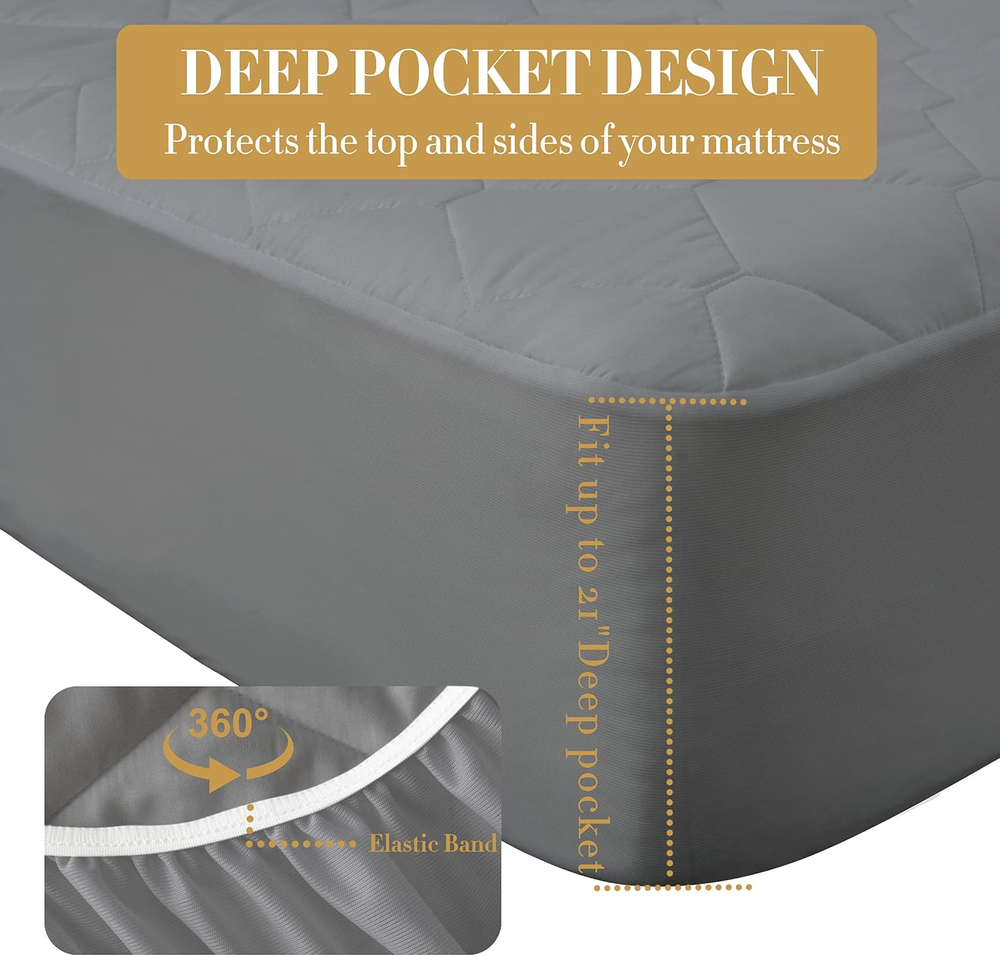 1. This mattress pad is a game-changer! The waterproof protection is silent and effective, keeping spills and accidents from ruining my mattress. The quilted microfiber is super soft and breathable, making sleep comfortable. The deep pocket fits snugly on my queen bed without shifting. Love the premium feel and how well it protects—totally worth it!