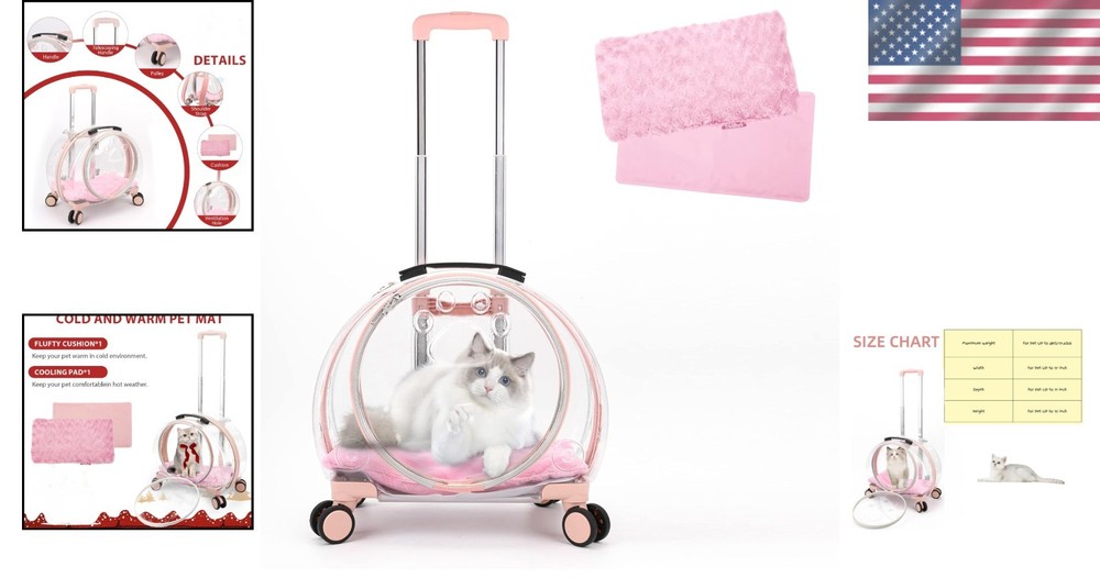 Breathable Pet Carrier with Wheels for Dogs Cats Travel Multiple Carrying Options ‹ › ‹ › ‹ › ‹ › ‹ › ‹ › ‹ › ‹ › Breathable Pet Carrier with Wheels for Dogs and Cats Your furry friend deserves the best, especially while traveling. Our Breathable Pet Carrier is the ideal solution for explorers like you, combining functionality and style with the utmost comfort for your pet. Features: Multi-functional design - fits your needs as a Backpack, Rolling Carrier, and Tote Carrier. Telescoping handle, shoulder strap, and convenient handle for varied carrying options. Multi-directional silent wheels ensure a smooth, quiet ride. Weighing only 5.2 lbs, it reduces stress on your back and hands for effortless travel. Fully transparent views for good ventilation and to keep your pet engaged with their surroundings. Six ventilation holes for optimal airflow, along with a front window for comfort and feeding. Includes two mats: a warm mat for winter outings and an ice mat for summer adventures. Spacious dimensions: 17.5"L x 11.8"W x 15.7"H, ensuring ample room for your pet. Benefits: Versatile carrying options make it easy to customize your travel experience. Transparent design fosters comfort and curiosity for your pet. Optimal breathability and ventilation to keep your companion relaxed. Seasonal mats ensure your pet stays comfortable -round. Lightweight construction minimizes strain during travel. Protective film keeps your carrier looking like new after every adventure. Why Choose Our Breathable Pet Carrier? Say goodbye to the struggles of pet travel with our intelligently designed Breathable Pet Carrier . Whether you're heading to the vet or embarking on an adventure, this carrier showcases convenience, comfort, and innovation. Its versatility as a backpack, rolling carrier, or tote makes it perfect for any journey, while its transparent design ensures your pet enjoys every moment with you. Invest in your pet’s traveling experience today—order your Breathable Pet Carrier now and explore the world together in style! Shipping Free & Fast Shipping - We offer free shipping to most of the USA with a normal delivery time of 3-7 days. However, due to the current situation, additional delivery time (up to 3 weeks) may be required for some items. Alternative Carriers - We may use alternative carriers (e.g. USPS, FedEx, UPS, etc.) to ensure your package arrives safely and on time. Due to the use of multiple carriers, we are unable to provide a tracking number automatically. Handling Time - Orders are processed and shipped within 1-2 business days of receiving cleared payment. Shipping Restrictions - Shipping to Alaska, Hawaii, Puerto Rico, Guam, and other US territories may incur shipping charges or delivery restrictions. Please contact us before ordering, or your order can be refunded/cancelled. State Restrictions - There may be restrictions based on your state of purchase. For example, certain items may not be shipped to California due to state regulations. Contact for Tracking Updates - If you require tracking updates or have any concerns about the delivery of your order, please feel free to contact us, and we will be happy to assist you. Return 30-Day Hassle-Free Returns - We want you to be completely satisfied with your purchase. If you are not, you can return the item within 30 days of receiving it for a full refund or exchange. Easy Return Process - To start a return, simply contact us and we will provide you with a prepaid return shipping label and detailed instructions. Restocking Fee - There are no restocking fees for returns. However, the buyer is responsible for return shipping costs if the return is not due to a seller's error. Refund Processing Time - Refunds will be processed within 5 business days of receiving the returned item in its condition. Payment We accept all major credit cards, PayPal, and Apple Pay for your convenience. Your payment information is secure and encrypted to ensure a safe and seamless transaction. Please complete your payment within 3 days of purchase to avoid any delays in shipping. Feedback Your feedback is extremely important to us. We strive to provide the best products and customer service possible. If you are satisfied with your purchase, please take a moment to leave us a positive review. If you have any concerns or issues with your order, please contact us before leaving negative feedback. We are committed to resolving any problems and ensuring your satisfaction. Contact Us If you have any questions or concerns, please feel free to out to our customer support team. You can contact us through the eBay messaging system. We are available Monday to Friday, 9:00 am to 5:00 pm EST, and we will do our best to respond to your inquiry within 24 hours. Buy it now and enjoy a pleasant shopping experience! Unit Quantity: 1 Type: Rolling Carrier Dog Size: S Dog Breed: Dog Material: Plastic