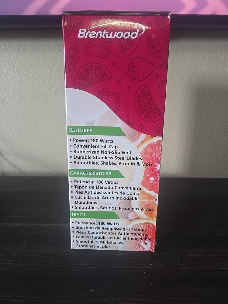 The Brentwood JB-191BL Personal Blender is a compact appliance designed for blending various ingredients such as fruits, shakes, juices, frozen drinks, and smoothies. It features a 14 oz capacity and durable stainless steel blades capable of whipping, liquefying, pureeing, blending, and crushing ice. The blender operates with a single touch, making it convenient to use. Its lightweight and portable design with non-slip feet ensure stability during operation. The BPA-free construction includes dishwasher-safe parts for easy cleaning. This electric blender in blue and white color is ideal for creating a variety of beverages at home.
