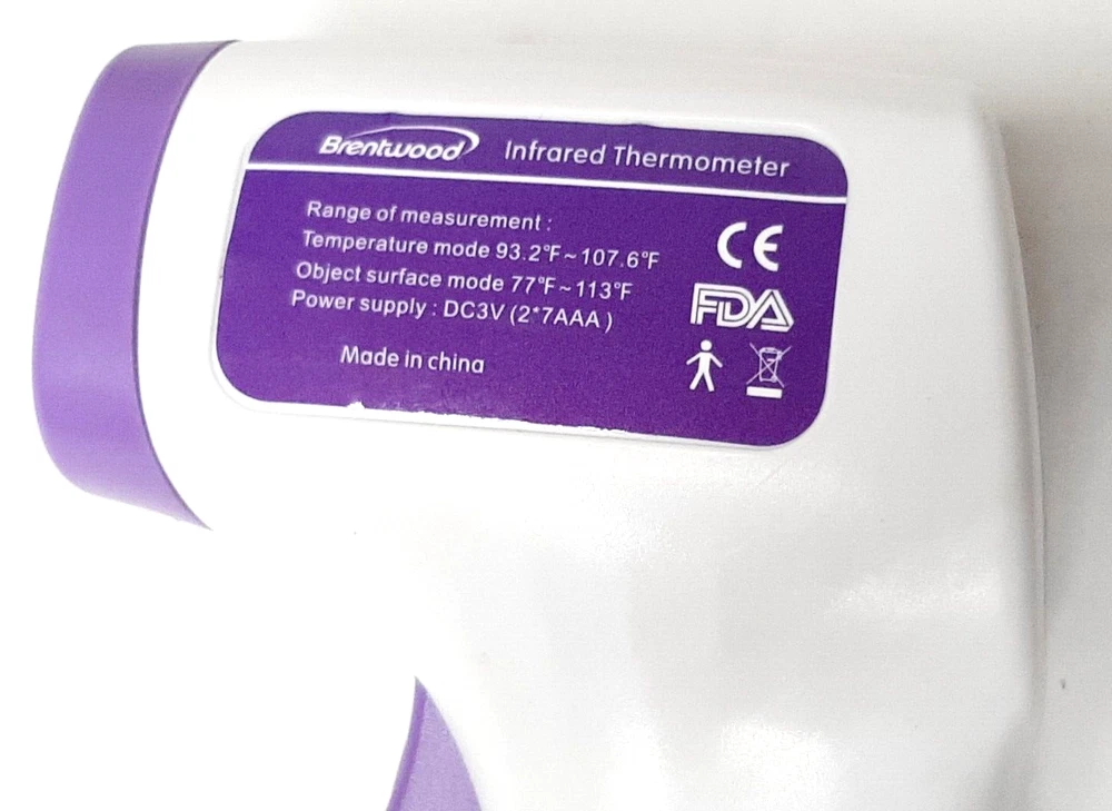 Brentwood Infrared Thermometer No-Touch Temporal/Forehead Model IRT-900 Good condition; minor signs of use and wear; battery door is a little touchy