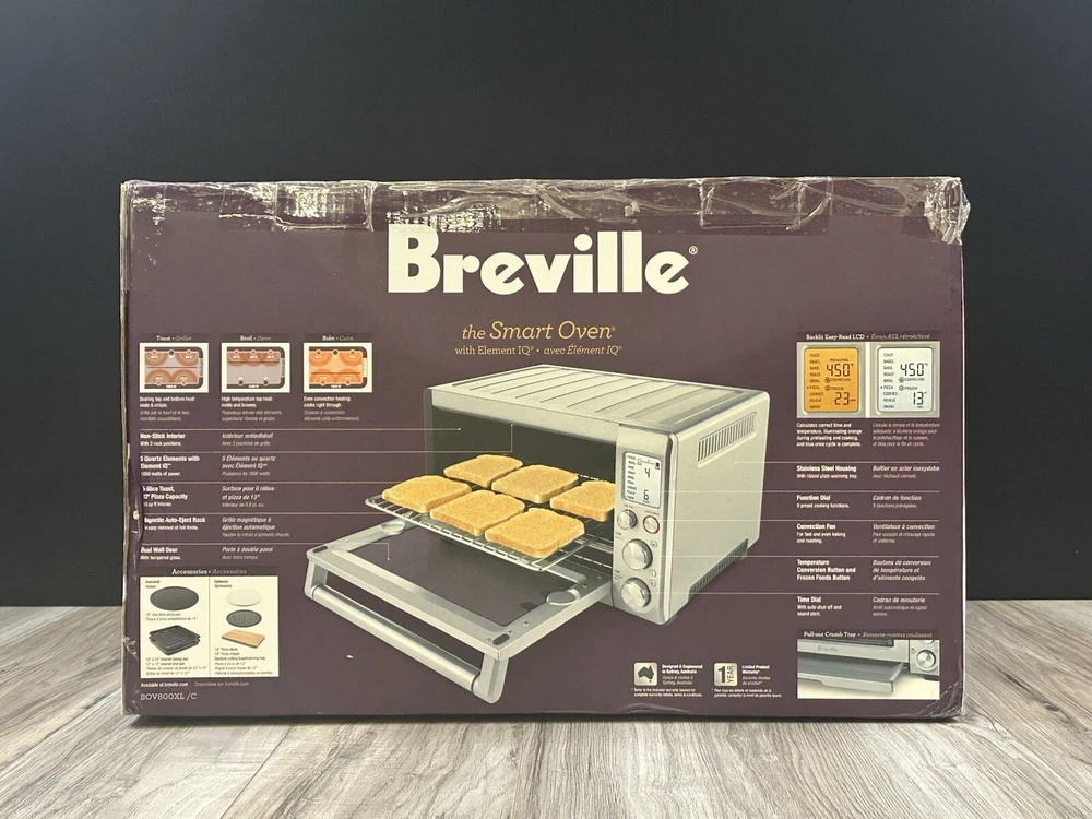 The Breville BOV800XL Smart Oven is a used countertop oven that can be powered by electricity. It has a sleek silver color and is made of durable aluminum material. The oven measures 21.5 inches in length, 12.7 inches in height, and 17.5 inches in width. This convection toaster oven by Breville features an 1800W power rating and can be used for baking. Its model number is BOV800XL and it was manufactured in China. The oven also has a brushed finish and comes with a variety of features, including the ability to convection oven. Pre Owned Gently Used works perfectly, Smoke Free home. 30 day return policy. Free shipping and Fast shipping. Thank you for considering buying from my eBay store. THE ITEM IN PHOTOS IS THE EXACT ITEM THAT WILL BE SHIPPED.