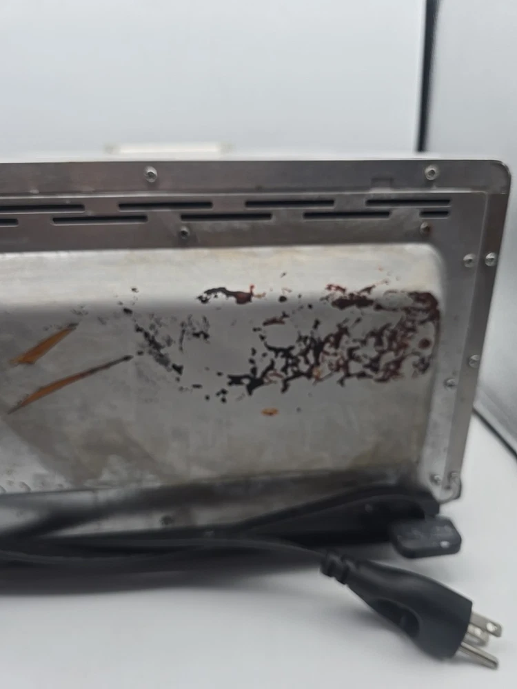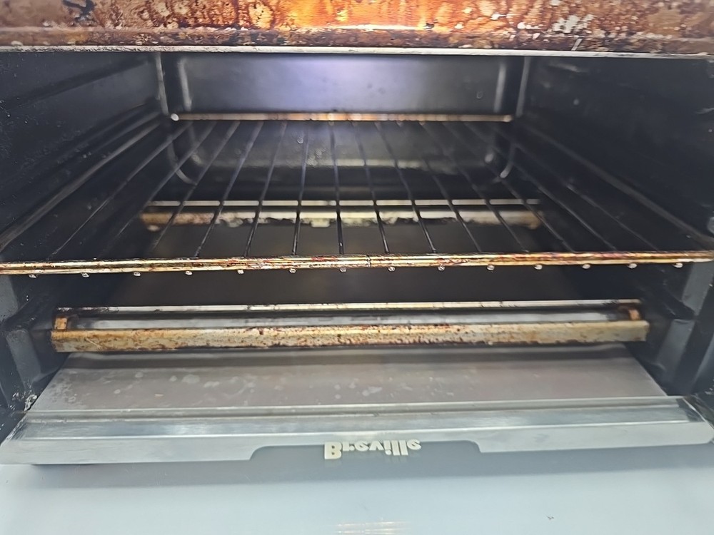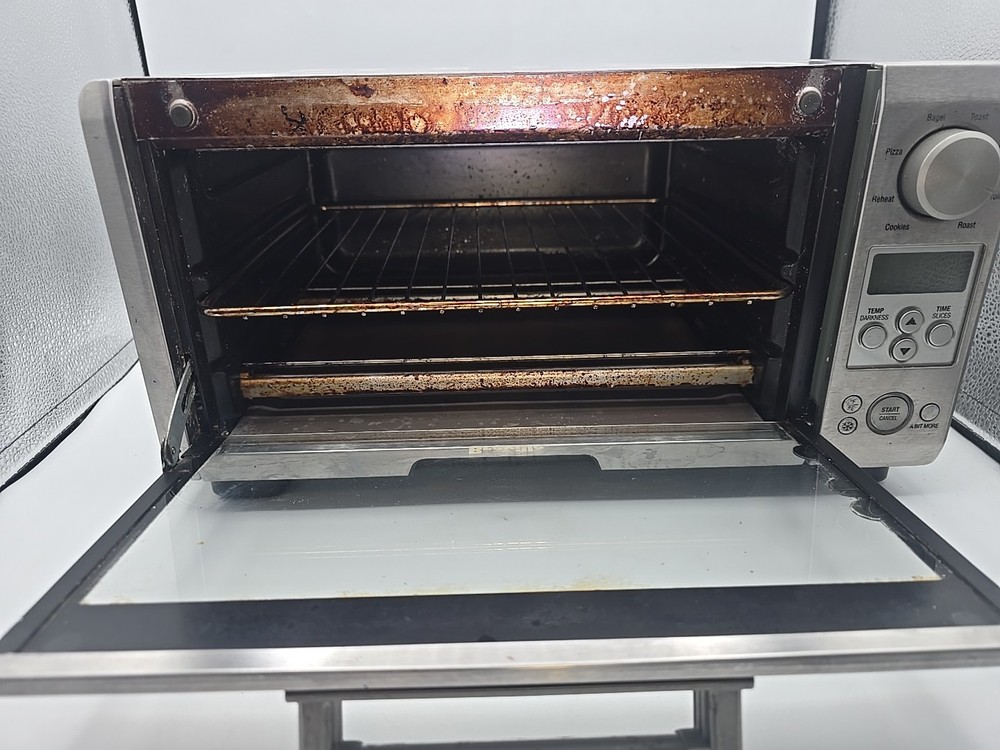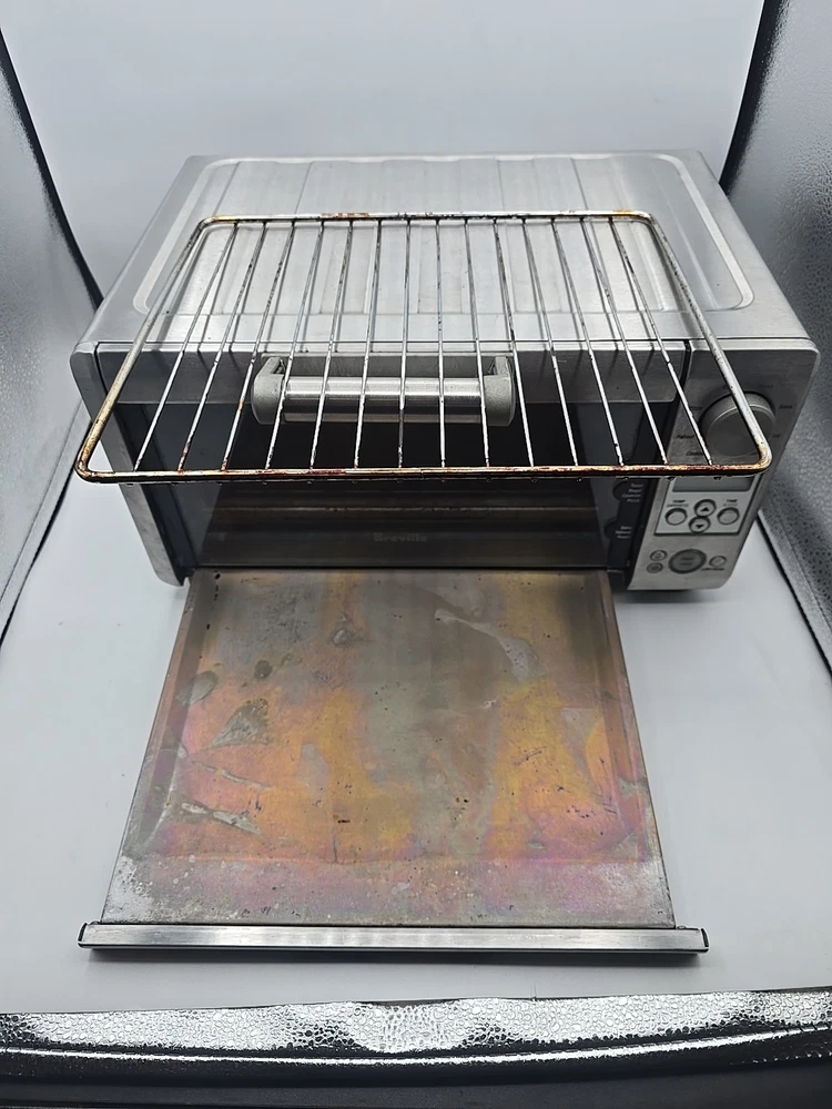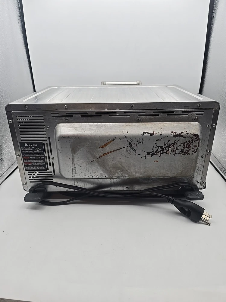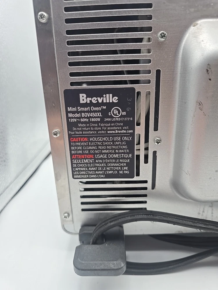 some grease stains throughout, we tried cleaning it with baking soda and vinegar but it was too much of a hassle. We ship everyday except for Sundays, most of the time we ship same day but we put 1 day handling time on all listings just in case we can not ship the item same day. We aim answer all questions and messages within 24 hours unless on holiday so feel free to ask any questions you may have! The Breville Mini Smart Oven BOV450XL is a versatile toaster oven that offers a maximum timer setting of 220 minutes and operates on an electric power source with 1800W of power. Made of durable stainless steel in a sleek silver color, this small kitchen appliance is perfect for toasting, broiling, and baking with its Element IQ technology. The oven features a pizza bake function, auto shut-off, adjustable racks, and a removable drip tray for easy cleaning. With a compact design and a brushed finish, this Breville toaster oven is a convenient and efficient addition to any kitchen.
