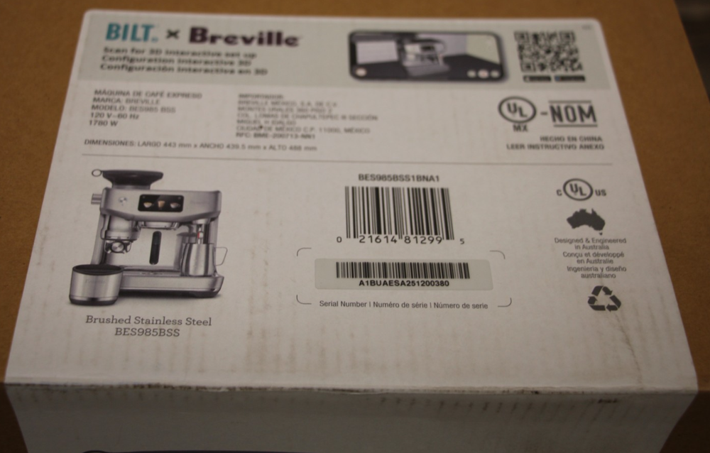Up for sale is a Breville Oracle Jet Espresso Machine Brushed Stainless Steel BES985BSS1BNA1 Item is new but the box was opened in unused condition to verify contents *** PLEASE NOTE ! Our store buys and sells a variety of used electronics, instruments, tools, antiques and many other items. We do our absolute best to thoroughly test all of our merchandise and accurately describe and depict any flaw or defect we find. If you come across an issue that we have overlooked, please contact us - we will be happy to work with you to resolve the issue. *** OFFICE HOURS Customer Service Hours: 9:00am - 5:00pm Monday – Friday (Closed major holidays) Have an issue with your item? Don’t worry, we’ll resolve it! Please don’t hesitate to send us a message if you have any concerns or issues with your order. We will respond as fast as possible during our business hours posted above. Note that our office is closed on Saturday and Sunday. RETURN POLICY We DO NOT accept returns. If there is a problem with your item please contact us and let us know what the problem is and we will work with you from there. We accept PayPal payments ONLY for shipped orders. If an item is paid for via PayPal, the item must be shipped. Items listed with LOCAL PICK-UP ONLY must be paid for in person upon pick-up with cash or credit at our physical store – there will be absolutely no exceptions. Ohio sales tax applies to Ohio residents. NON-PAYING BIDDERS : WE OPEN CASES IF WE DO NOT RECEIVE PAYMENT WITHIN 5 BUSINESS DAYS. We ship the majority of our items via UPS Ground, unless otherwise specified. PLEASE DO NOT PROVIDE A PO BOX ADDRESS unless we specify in the auction it will be shipped via USPS. Please provide a physical address for delivery. ALL packages with value over $250 will require signature for delivery. Item Location: BR1-G3 PACKED