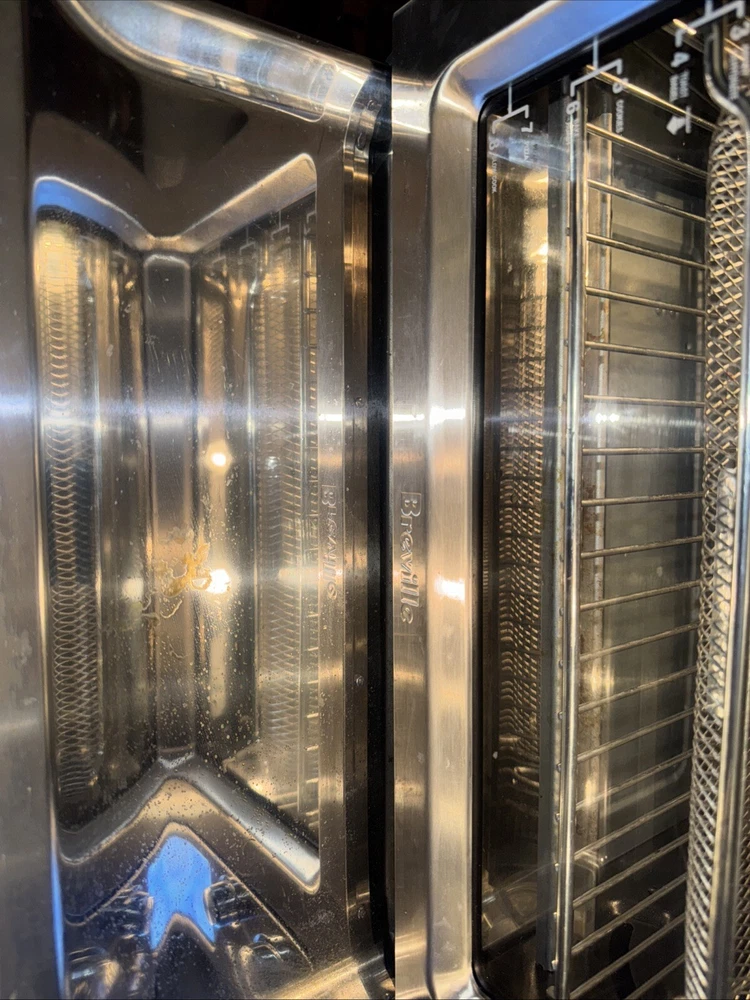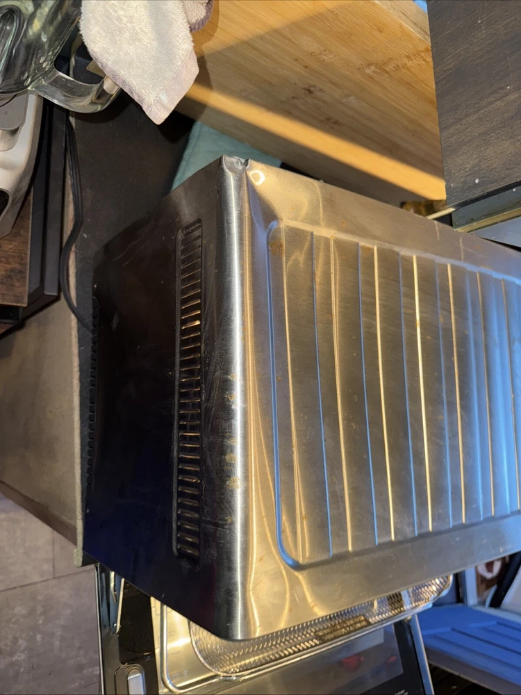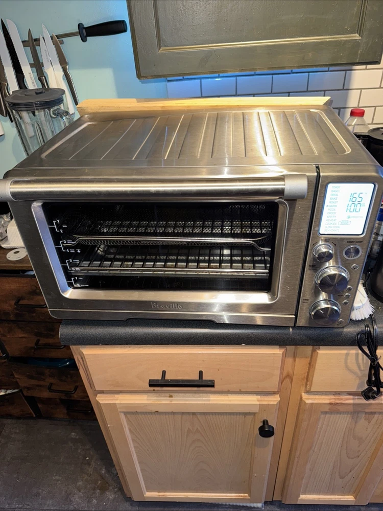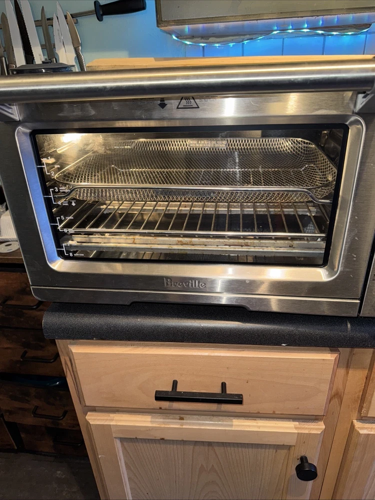 Introducing the Breville BOV900BSSUSC, a high-quality countertop oven perfect for baking delicious meals. This electric oven is made of durable aluminum and has a sleek brushed stainless steel finish. It measures 21.5 inches in length, 17.5 inches in width, and 12.7 inches in height, with a weight of 38.9 lbs. With a power of 1800 W and a voltage of 120 V, this oven is perfect for all your baking needs. It has a toaster oven design and can fit up to 28L of food. The appliance uses include baking, and it is a great addition to any kitchen. The color of the oven is silver, and it comes with a variety of features. Cosmetic defect and back left corner as seen in photo. If you put a cutting board over it, you can’t really tell this is what I’ve done. I’ve only owned it for like three weeks. The previous owner dropped it on its side. I do a lot of like a pallet finding and treasure hunting and this was like one of the pallet items that I found that I decided to use, but I have decided that it is way too big for my 100 square-foot kitchen. Works great other than the cosmetic defects.