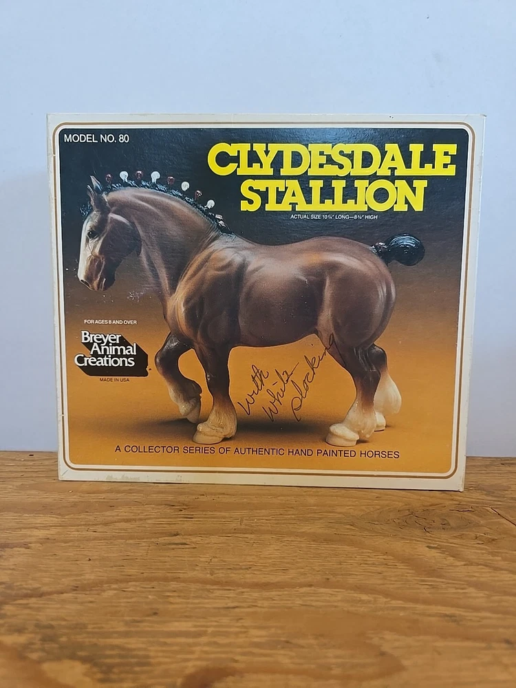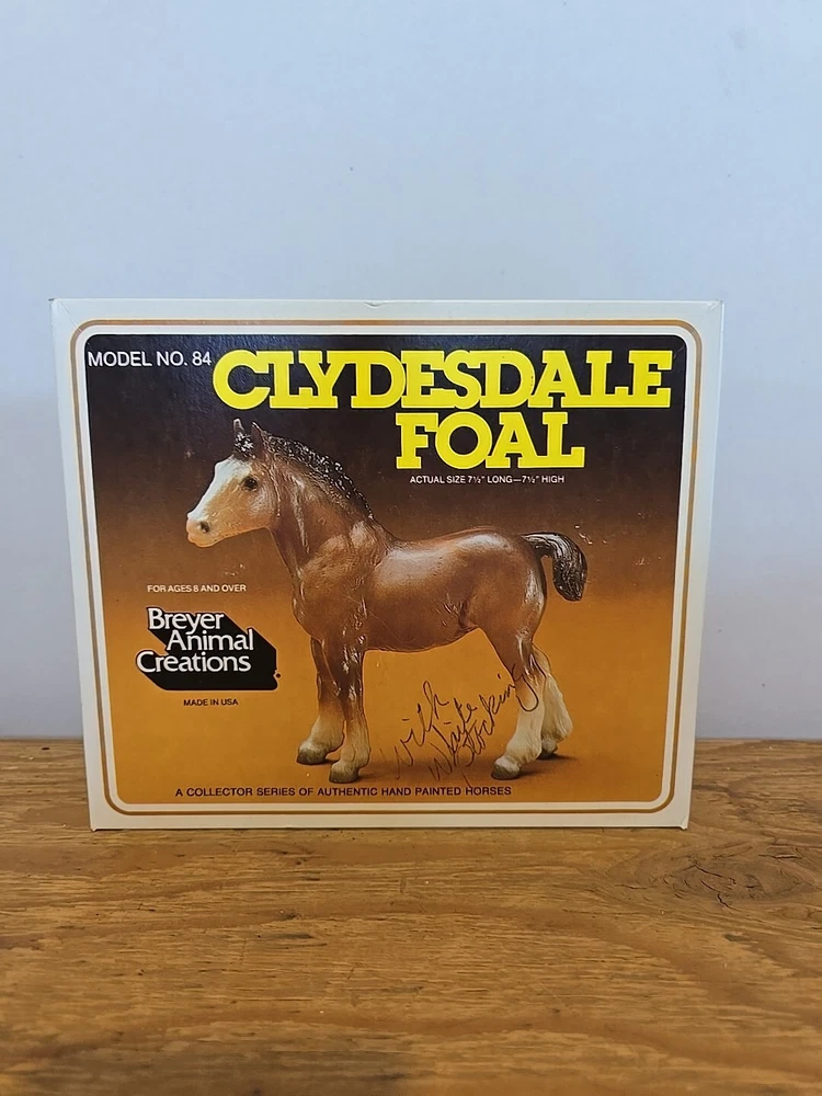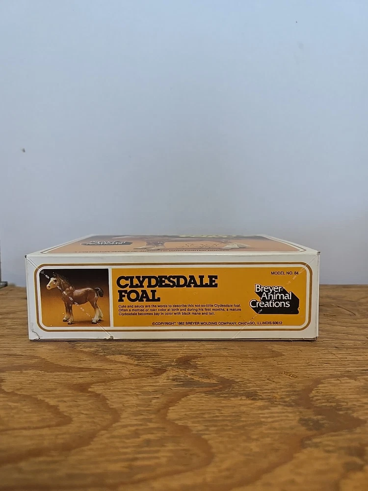 Breyer 1982 Clydesdale Stallion #80, Mare #83, and Foal #84. This stunning model horse collection is made of high-quality plastic and comes with its original boxes.
