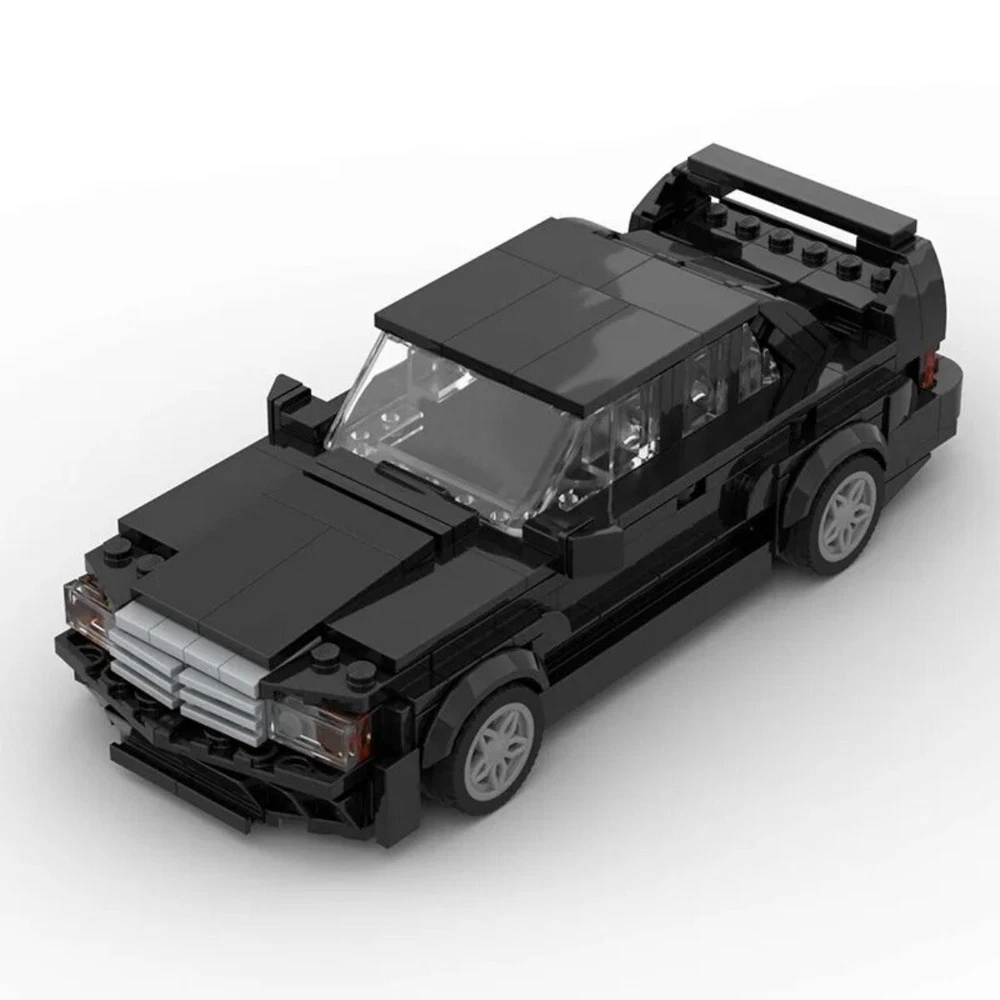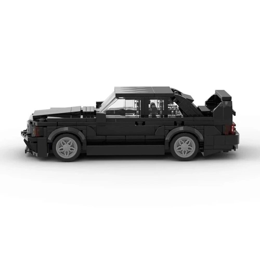Brick Works Black Mercedes E190 EVO ll AMG MOC Logo Building Bricks Sports Car