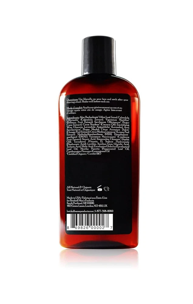 Brickell Men's Products Instant Relief Aftershave for Men, Natural and Organic Soothing After Shave Balm to Prevent Razor Burn, 4 Ounce, Scented Item Volume 118 Milliliters Item dimensions L x W x H 1.25 x 5.5 x 2.25 inches Age Range (Description) Adult Special Feature Natural Ingredients About this item What It Does: This light, fast-absorbing men's aftershave lotion is packed with natural ingredients. Calms, hydrates, and protects your face and neck. Won’t clog pores or irritate skin. Who It’s For: Men of any age with any type of skin - especially sensitive skin prone to post shave irritation and dryness. How It Works: Botanical extracts reduce razor burn, repair skin, and remove bacteria from the pores after shaving. This prevents irritation and ingrown hairs. Natural hydrators in this natural, alcohol-free aftershave for men infuse the skin with moisture. Key Ingredients: Natural & Certified Organic ingredients, including aloe vera, lavender, vitamin E & sugar cane. 98% natural, 80% organic. Product details Is Discontinued By Manufacturer : No Product Dimensions : 1.25 x 5.5 x 2.25 inches; 4 ounces Manufacturer : Brickell Men's Products Country of Origin : USA Important information Safety Information For External Use Only Indications Calms, hydrates, and repairs your face and neck, all without clogging pores or irritating skin. Ingredients Aloe Leaf Juice*, Calendula Extract*, Bilberry Fruit Extract*, Sugar Cane Extract*, Coconut Oil*, Emulsifying Wax, Glycerin, Lavender*, Acer Saccharinum* (Sugar Maple), Orange Peel Extract*, Lemon Peel Extract*, MSM, DMAE, Cranberry Fruit Extract*, Stearic Acid, Jojoba Oil*, Vitamin E, Hyaluronic Acid, Lecithin, Xanthan Gum, Glycolic Acid, Tartaric Acid, Malic Acid, Eucalyptus Leaf Oil, Peppermint Leaf Oil, Lemongrass Oil. *Certified Organic. We only use the highest-grade natural ingredients. We use 100% certified organic ingredients when possible and NEVER any: Petrochemicals, sulfates, parabens, phthalates, synthetic fragrance or color, TEA, DEA, Glycols, silicones, or PEGs. Tested only on humans. In simple terms: We make the purest products a man can use with 100% assurance you're not putting suspect chemicals on your body. Directions Apply the men's aftershave balm immediately post shave, making sure to cover the entire shaved area. For a better shave, use our Smooth Brushless Shave Cream. Product Description