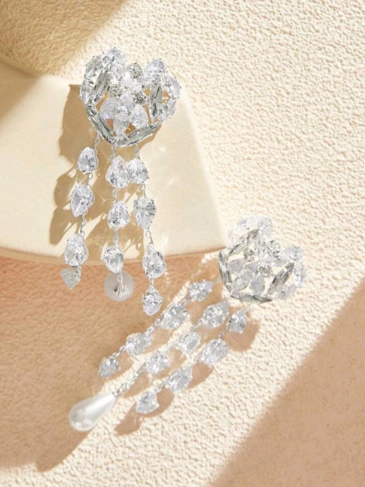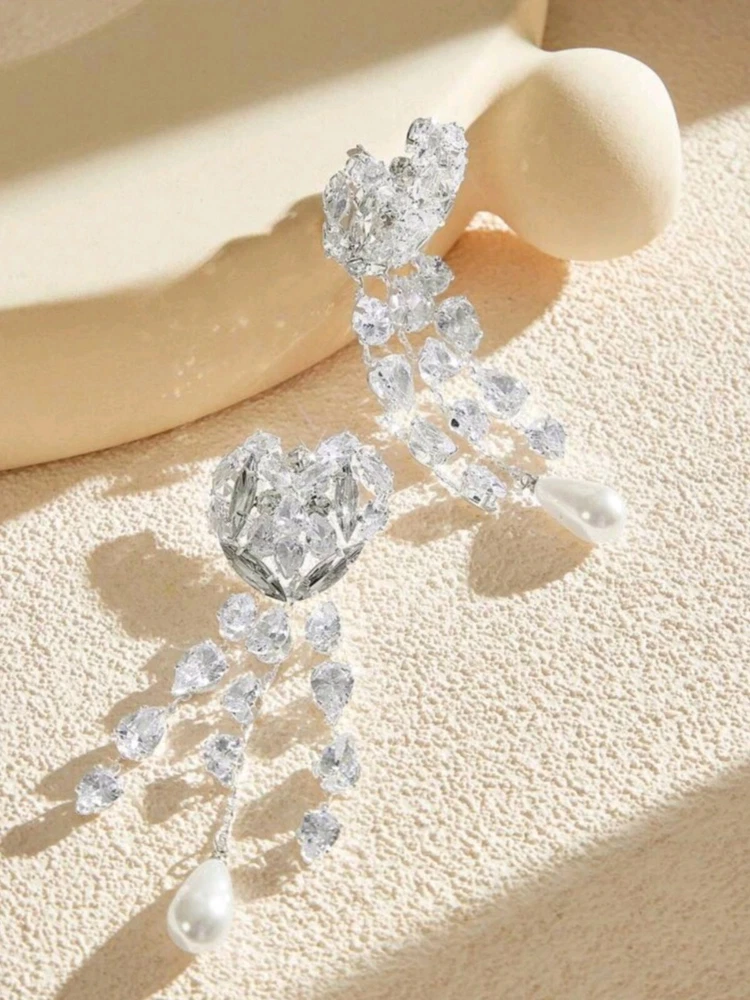 Vintage: No Country of Origin: Italy Shape: Heart Theme: Music & Dance, Fashion & Costumes, Colleges & Universities, Beauty Brand: Fashion Jewelry Material: Rhinestone Style: Tassel Antique: No Type: Earrings Seller Warranty: Yes Metal: Titanium Occasion: Wedding, Anniversary, Birthday Handmade: No Color: Silver Main Stone Color: White/Colorless
