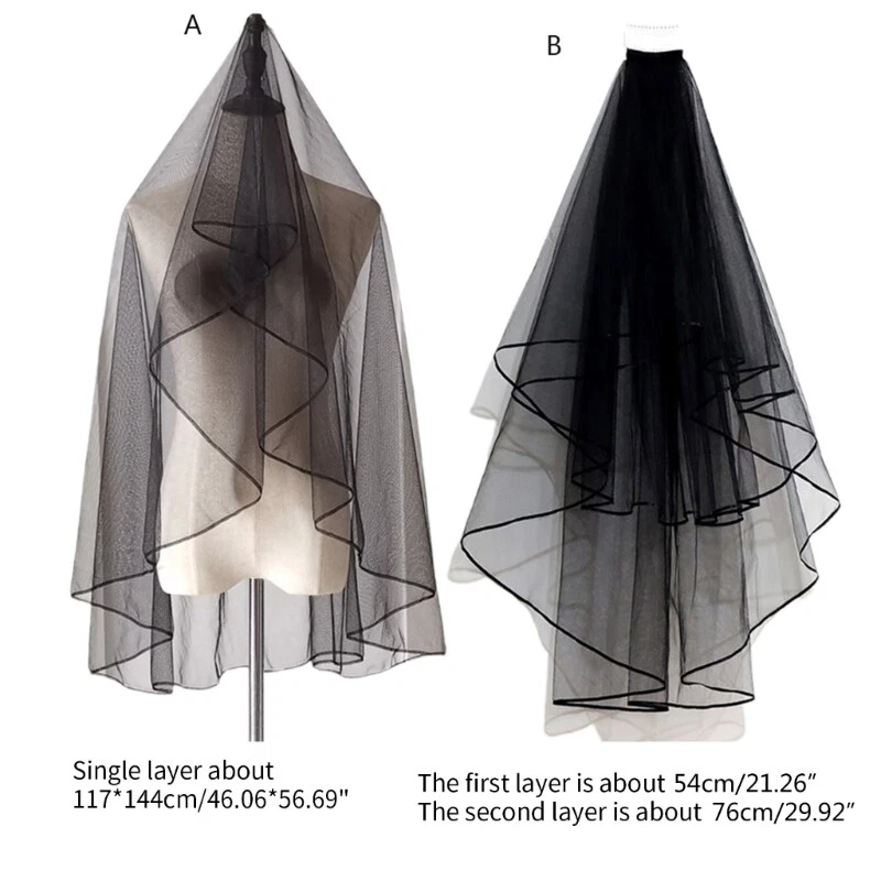 Features: and high 2 to choose,not demand exclusive hair to hold it,elegant and simple tulle veil. Black short veil,easy to different outfits, draw other's attention,make attractive looking. for Ideal gifts and unique can be a special your friend and family during the festival. Novelty headpiece,suitable for different occasions,cosplay,theme party, Halloween dressing or any other fancy special occasion. Soft material, high gauze,skin-friendly and lightweight, comfortable to wear. Specifications: Gauze Color:Black Single Layer Length: Approx. 130 for cm/51.18 inch Double Layer Length: First Layer: Approx. 60 for cm/23.62 inch Second Layer: Approx. 80 for cm/31.49 inch Package Includes: 2 Package optional) Package 1 includes: 1 x Single Layer Veil Package 2 includes: 1 x Double Layer Veil note: Please allow 1-2cm errors due to manual measurement, make sure that you do not mind before you order. Due to the difference between different monitors, the picture may not reflect the actual color of the item.